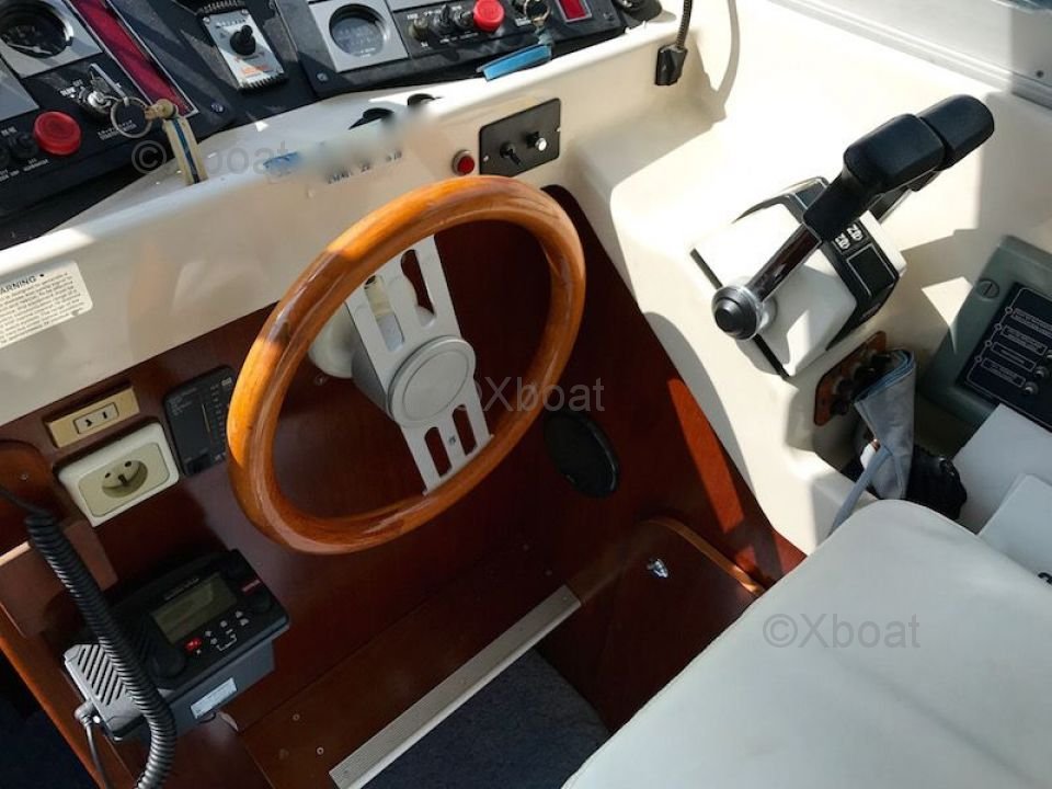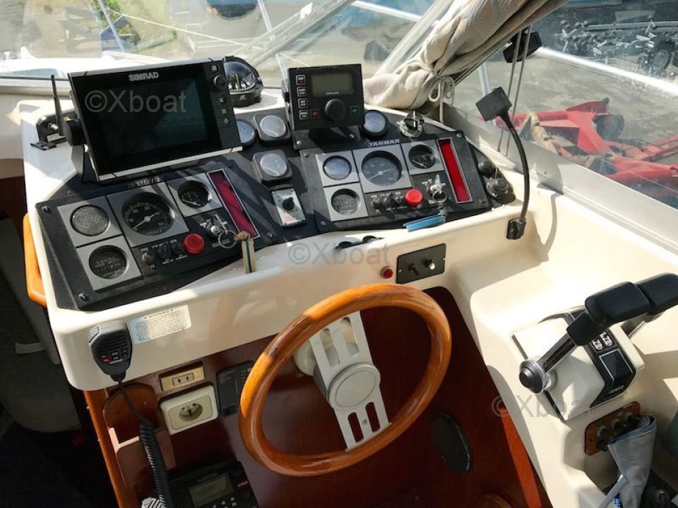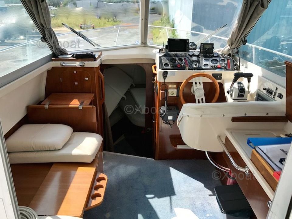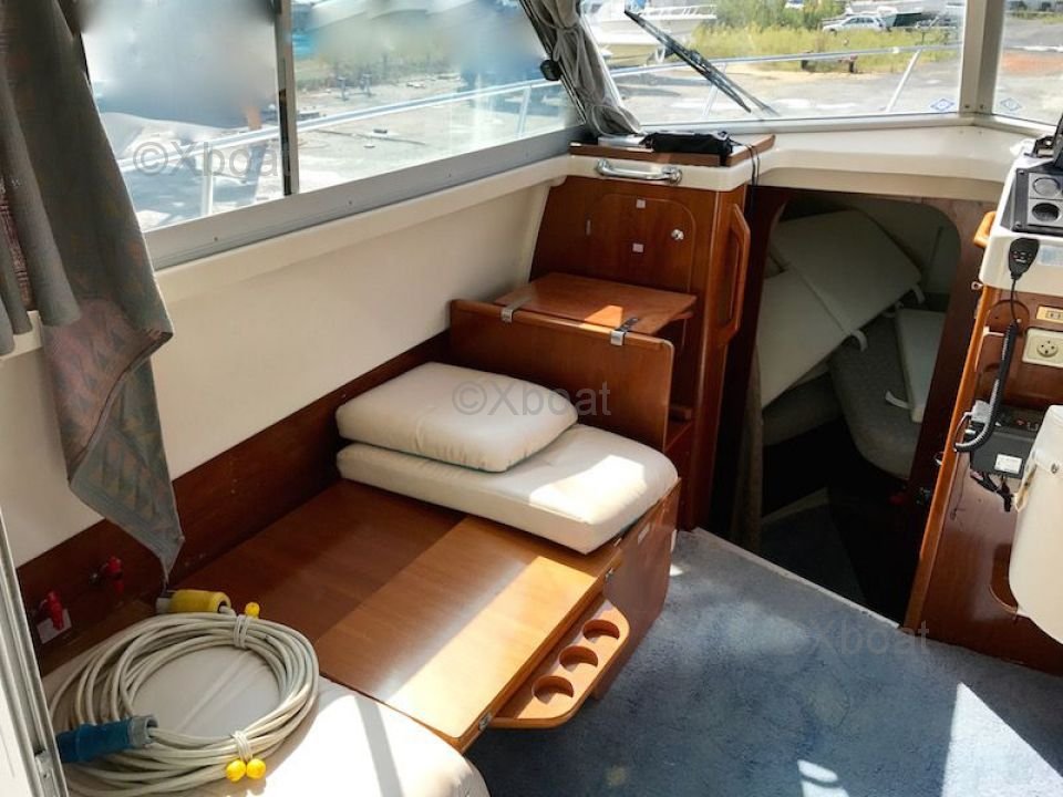 Pont et deck : Le pont est équipé de sièges confortables et d'un poste de pilotage bien conçu, offrant une vue dégagée sur l'horizon. Le flybridge, accessible par un escalier, permet de profiter pleinement des sorties en mer, avec des espaces de détente et de navigation.