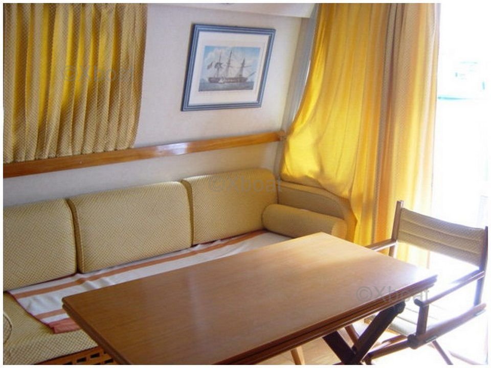 Le design intérieur est spacieux et lumineux, avec des finitions de haute qualité. Le salon est équipé de grandes baies vitrées offrant une vue imprenable sur l'extérieur. La cuisine est bien équipée avec des appareils modernes, et les cabines offrent un confort optimal pour des nuits paisibles en mer.
