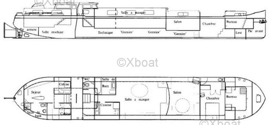 La péniche Freycinet, fabriquée par Vandeville, est un navire emblématique connu pour son design classique et sa robustesse. Conçue pour naviguer sur les voies d'eau intérieures, cette péniche est particulièrement appréciée pour son confort et sa polyvalence.