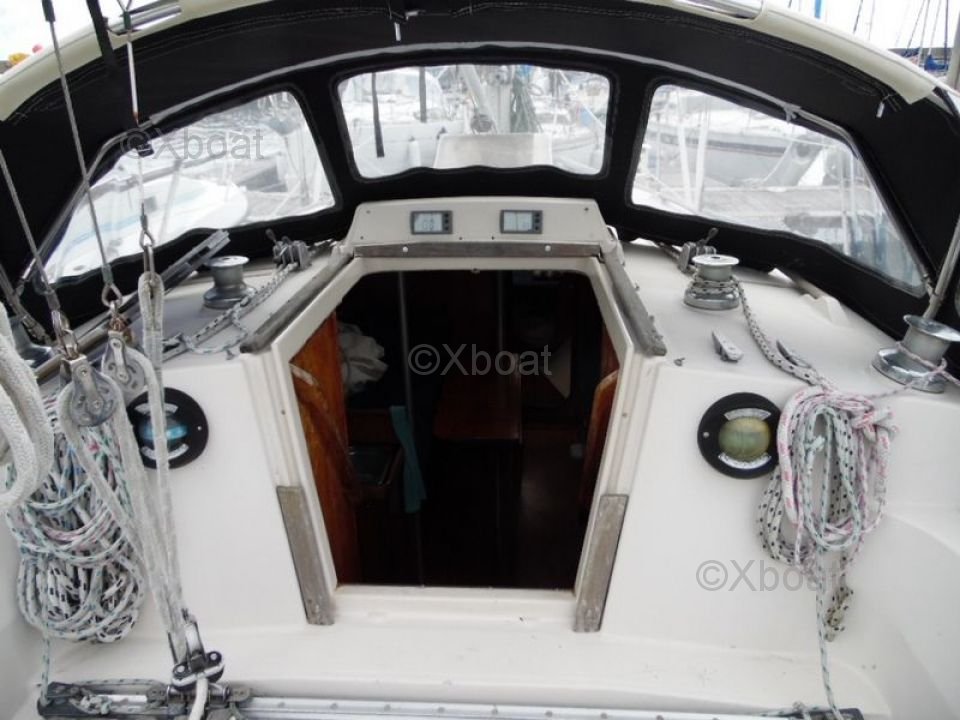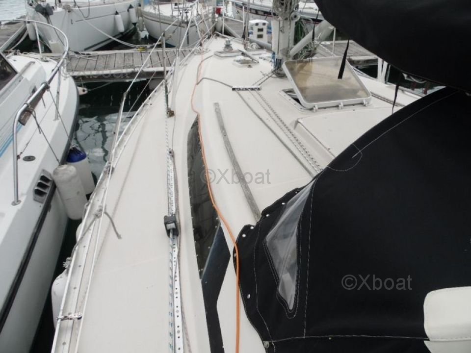Description : Le First 35 GTE est un voilier de croisière conçu pour offrir un bon compromis entre performance et confort. Il est apprécié pour sa stabilité et sa maniabilité, ce qui en fait un excellent choix pour les navigations côtières et les croisières au long cours. Le design intérieur est spacieux et bien agencé, offrant une bonne habitabilité pour un bateau de cette taille. Le cockpit est large et protégé, idéal pour les navigations en famille ou entre amis.
