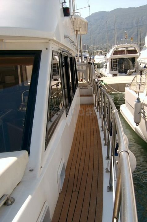 Aménagement extérieur : Le cockpit est vaste et bien protégé, offrant un espace de vie confortable. Le pont avant est accessible et peut être utilisé comme espace de détente ou pour ranger du matériel de pêche. Le bateau est également équipé d'une plateforme de bain arrière, facilitant l'accès à l'eau.