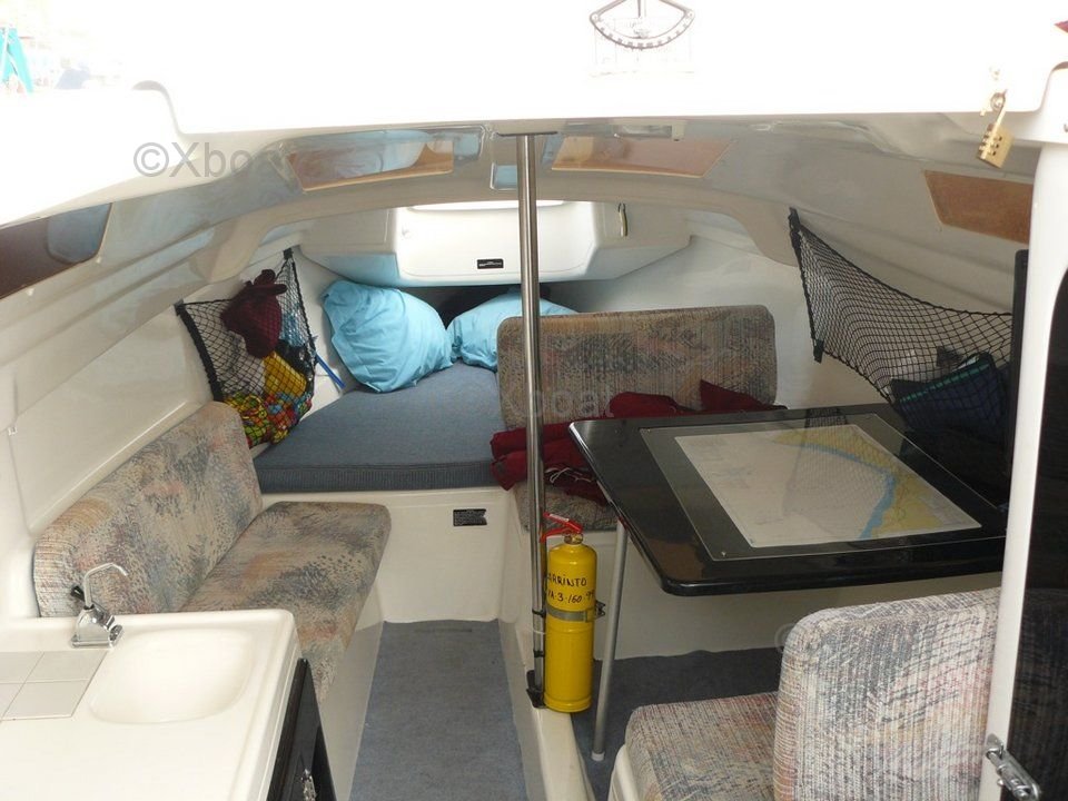 L'intérieur du MacGregor 26 est spacieux et bien conçu, offrant une cabine principale avec des couchages pour deux personnes, ainsi qu'un coin cuisine et un espace de rangement. Le cockpit est large et confortable, idéal pour les sorties en famille ou entre amis.