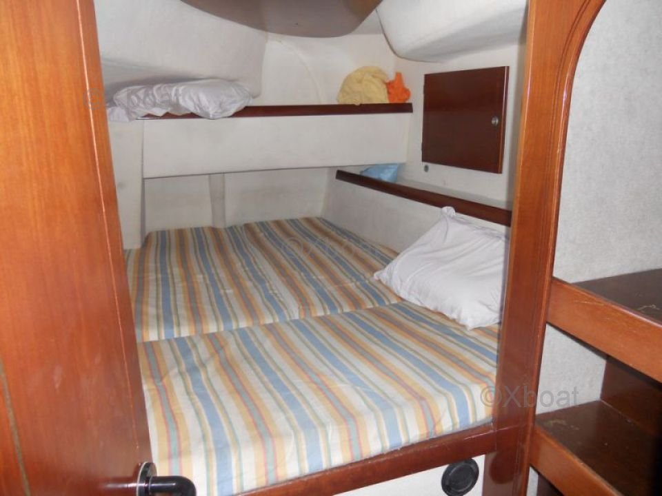 Le cockpit est vaste et offre une vue imprenable sur l'horizon. Il est équipé de banquettes confortables et d'une table à manger. Le pont avant est idéal pour se détendre et profiter du soleil. Les passavants larges facilitent les man?uvres à bord.