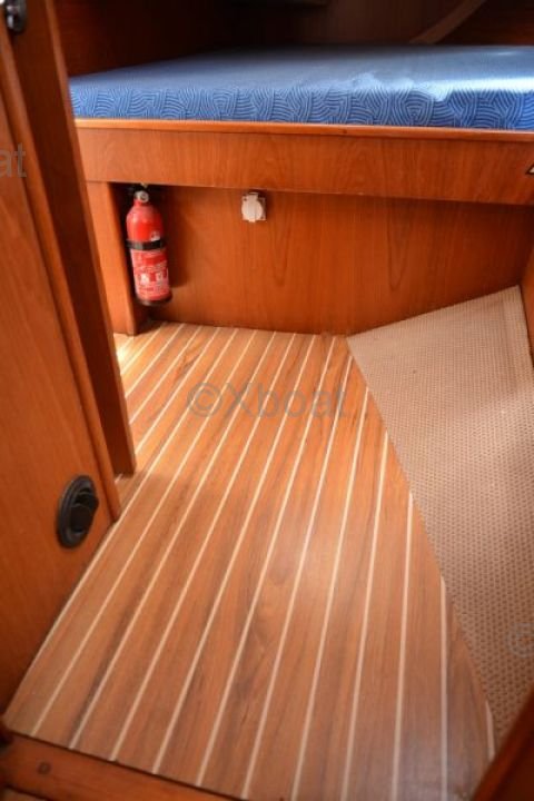 Le Wauquiez Centurion 42 offre un intérieur spacieux et bien agencé, avec des finitions de haute qualité. Il dispose de 3 cabines doubles, d'une cuisine équipée et d'une salle de bain avec douche. Le cockpit est vaste et protégé, offrant un espace de vie agréable à l'extérieur.