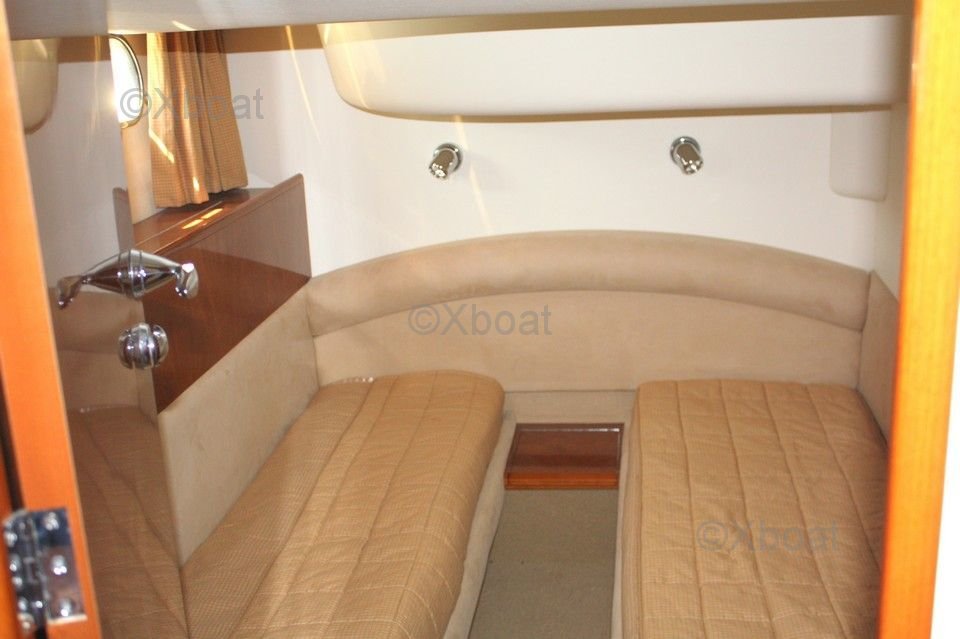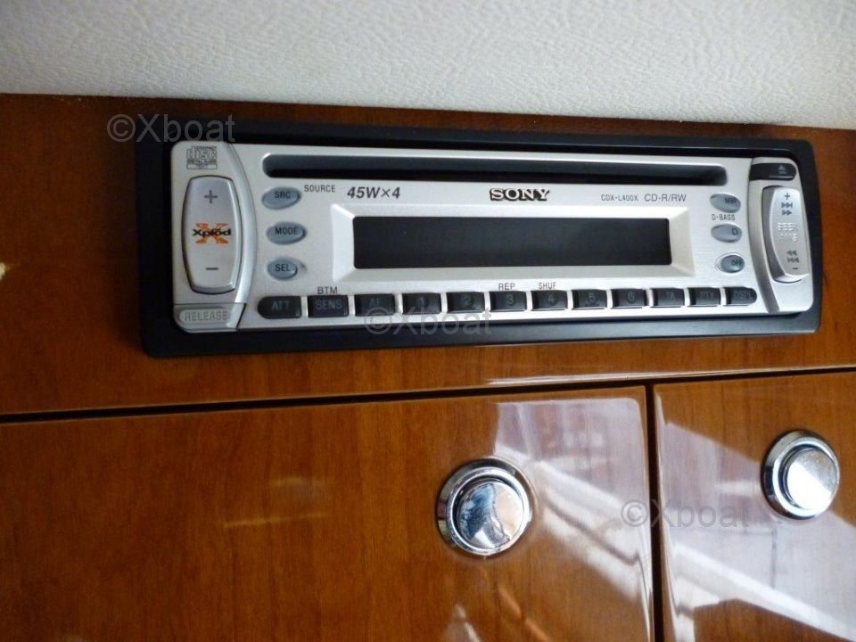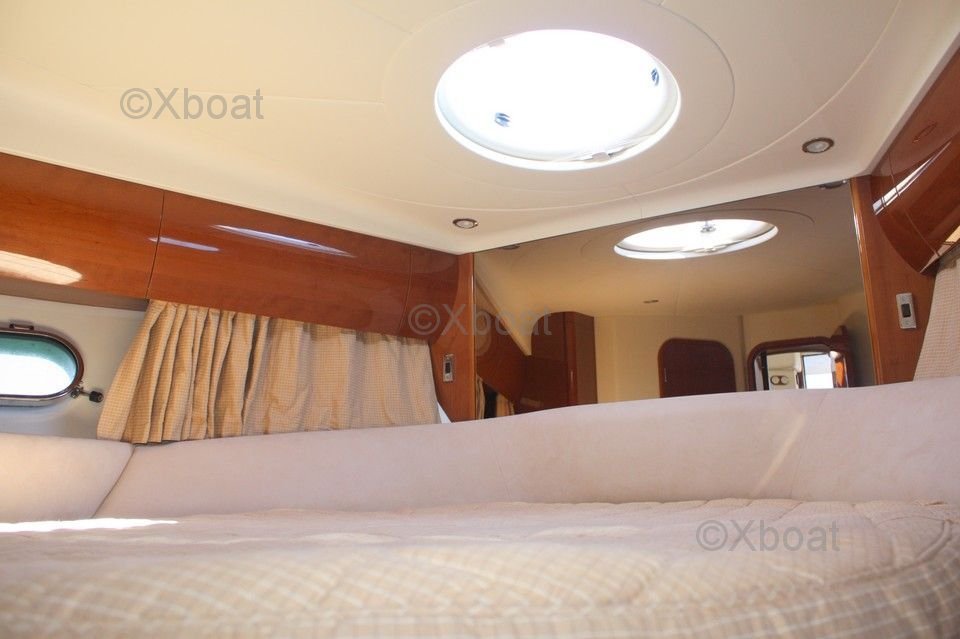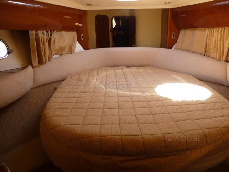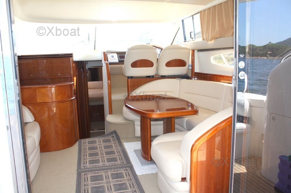 Le pont supérieur est un véritable espace de détente, avec un salon extérieur et un espace de bronzage. Le flybridge offre une vue panoramique sur l'horizon, parfait pour les soirées en mer. Le Princess 45 Fly dispose également de trois cabines, dont une suite principale avec salle de bain privée, offrant un confort optimal pour les longs voyages.