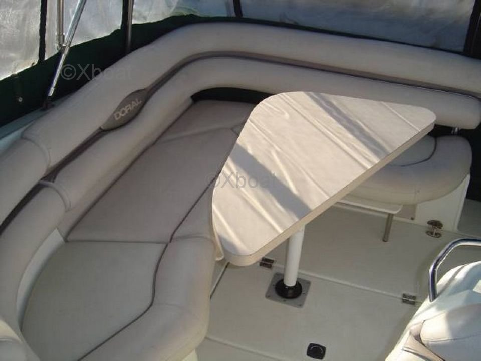 Le Doral 270 SC est équipé d'un moteur hors-bord puissant, généralement un moteur Mercury ou Yamaha, offrant une puissance allant jusqu'à 250 chevaux. Cette puissance permet au bateau d'atteindre des vitesses impressionnantes tout en assurant une bonne maniabilité.
