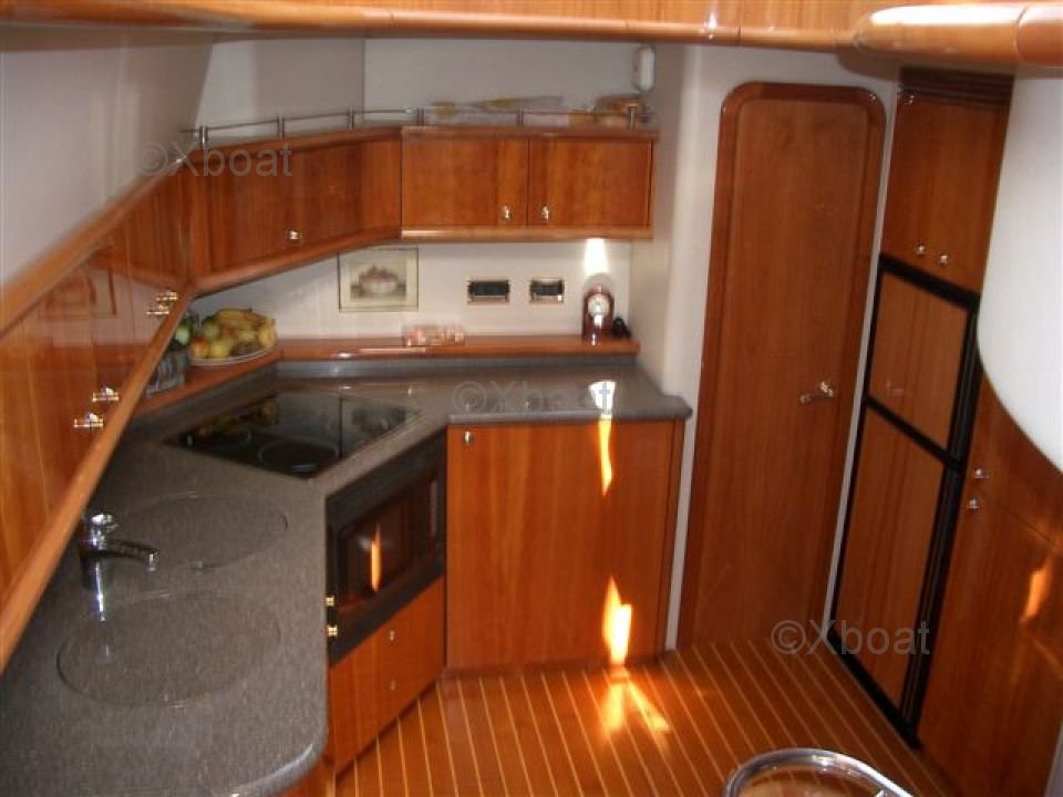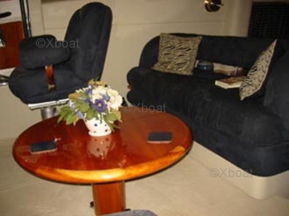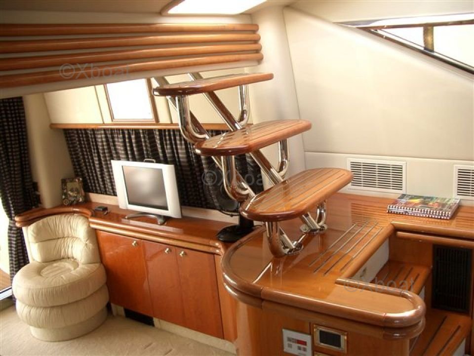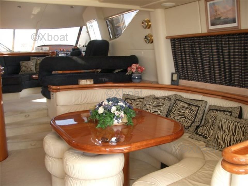 Le pont principal dispose d'un salon spacieux et d'un coin repas, tandis que le pont supérieur offre une zone de détente en plein air avec un salon et un bar. Le cockpit est équipé de sièges confortables et d'un système de navigation avancé.