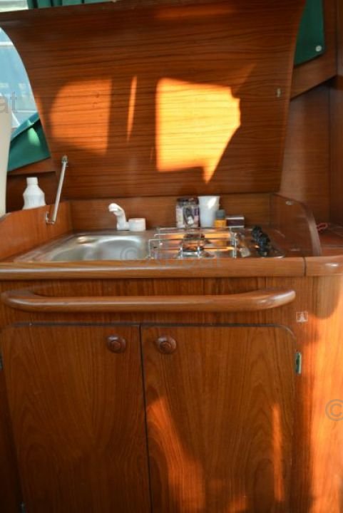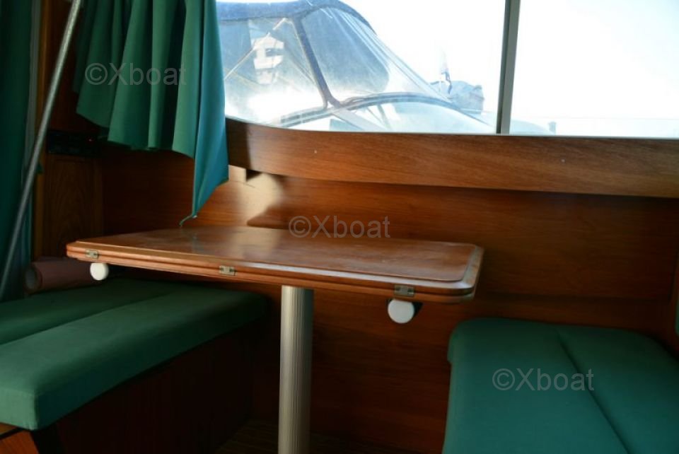 Bateau premiere main, peu utilisé et uniquement en promenade cotière. Double commande accelerateur au poste de barre et dans le cockpit pour la pêche lente à la traîne.Trowling valve pour peche a la traineJet de pont eau de merDouchette exterieure eau douceMoteur en parfait état. Salon convertible en couchage.