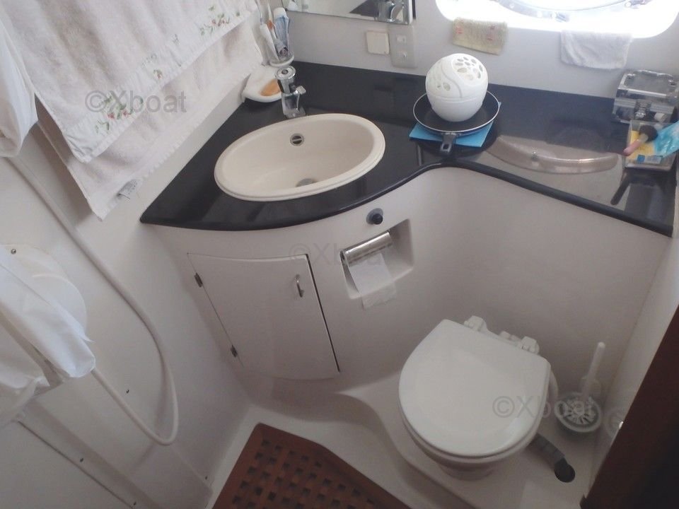 Aménagement intérieur : L'intérieur du Président 445 est spacieux et bien conçu, avec des matériaux de haute qualité. Il comprend généralement trois cabines, dont une cabine principale avec lit double, une cabine avant avec lit simple et une cabine arrière avec lit double. La salle de bain est équipée de douche et de WC.