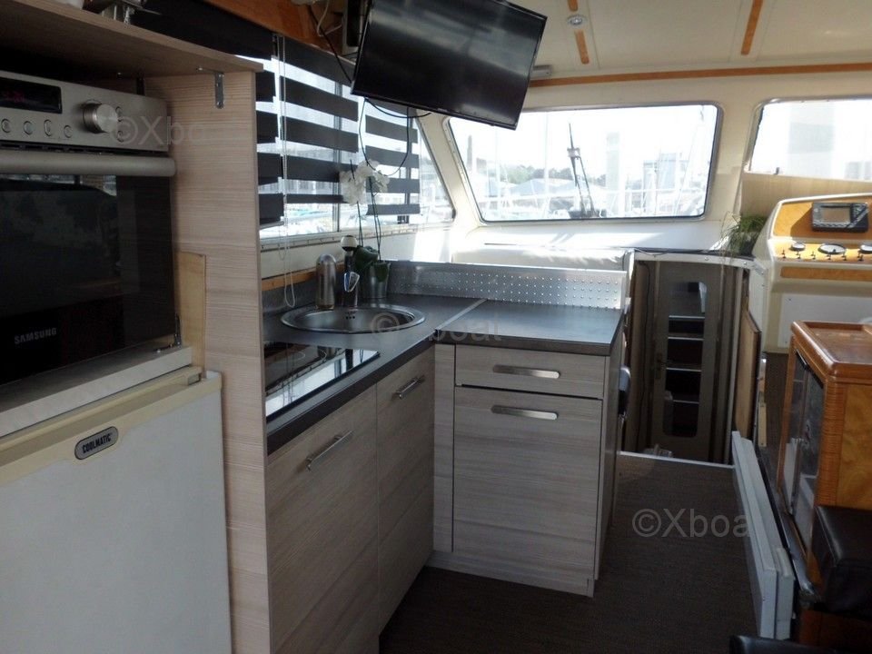 Motorisation : Le DOQUEVE 410 est généralement équipé d'un moteur diesel de marque Yanmar, offrant une puissance de 75 chevaux. Ce moteur assure une navigation fluide et économique, tout en garantissant une bonne autonomie.