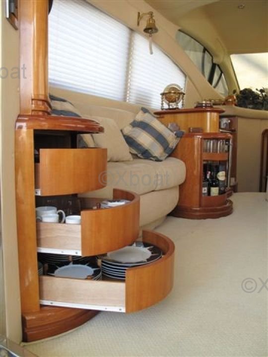 Performance: Grâce à sa coque en fibre de verre et à ses lignes de conception optimisées, l'Azimut 46 Fly offre une excellente stabilité et une maniabilité exceptionnelle, même en mer agitée.