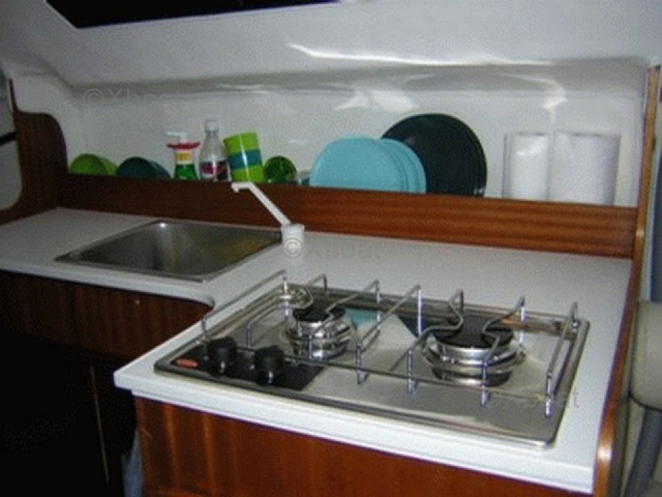 L'intérieur du Tonic 23 est fonctionnel et bien agencé. Il offre une cabine principale avec des couchettes confortables et un espace de rangement suffisant pour des sorties de plusieurs jours. La cuisine et les sanitaires sont compactes mais bien pensées pour une utilisation optimale.