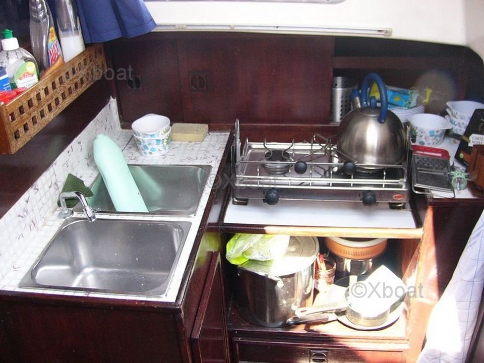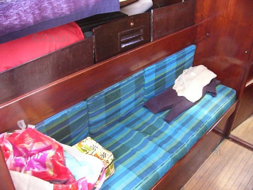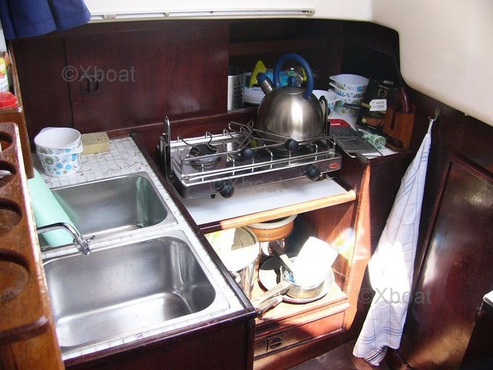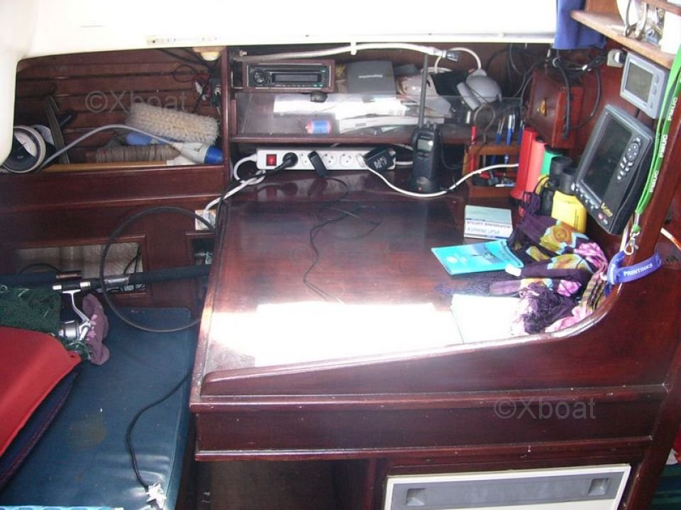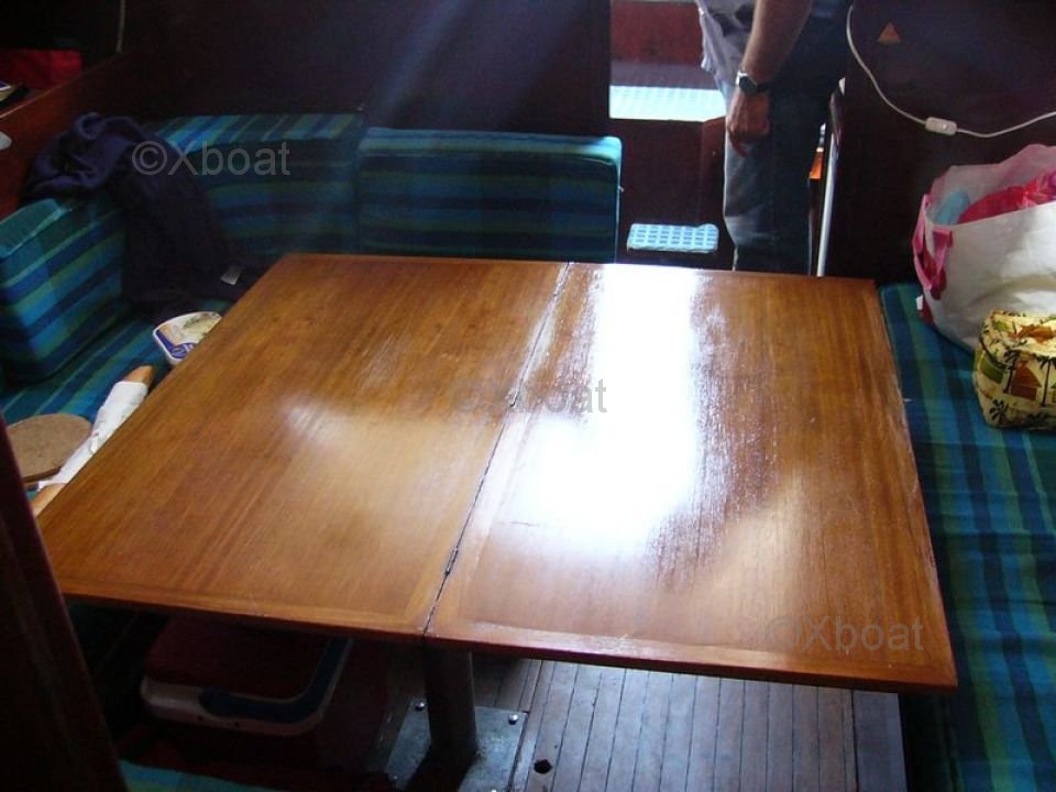 L'aménagement intérieur est conçu pour offrir un confort optimal, avec une cabine principale spacieuse, une cuisine équipée, et des couchages pour 6 personnes. Le cockpit est large et ergonomique, permettant une navigation aisée et sécurisée.