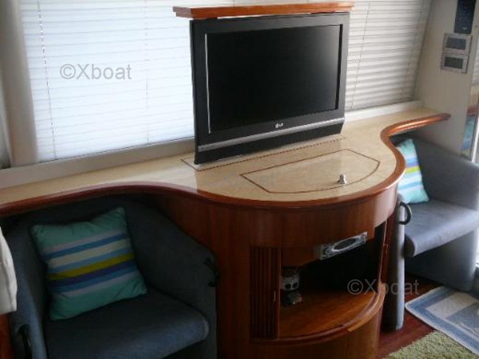 Systèmes et technologies : L'Azimut 52 est équipé de systèmes de navigation modernes, y compris des GPS, des radars, et des systèmes de communication VHF. Les systèmes de gestion de bord permettent de surveiller et de contrôler les principaux paramètres du bateau depuis le poste de pilotage.