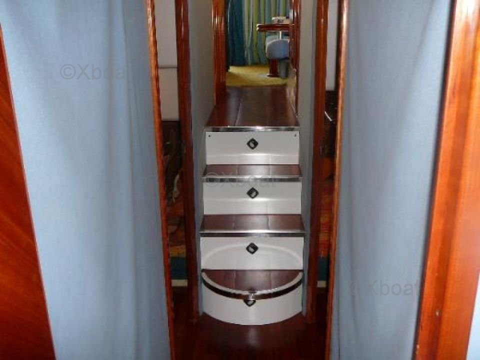 Capacité et confort : Ce yacht peut accueillir jusqu'à 8 personnes en configuration standard, avec des cabines spacieuses et bien aménagées. La cabine principale est souvent située à l'avant, offrant une vue imprenable et une intimité totale. Les cabines d invitados sont situées à l'arrière, avec des lits jumeaux ou convertibles.