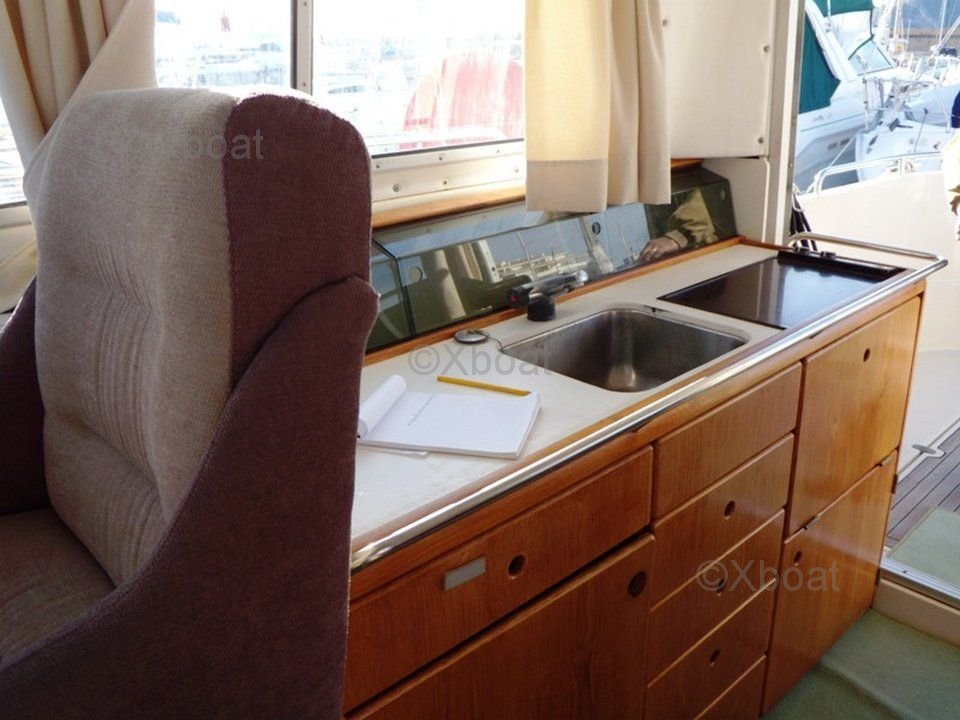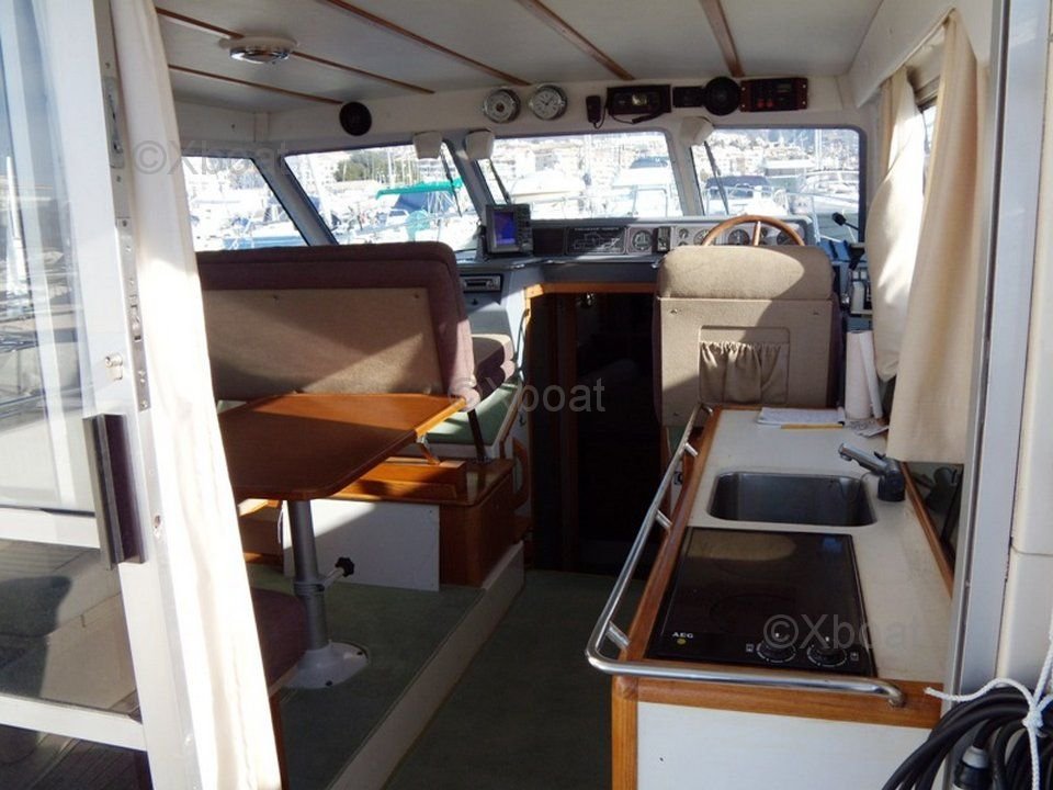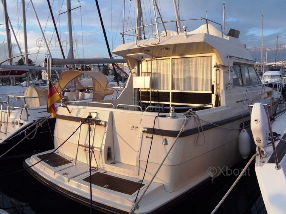Aménagement intérieur : L'intérieur du Nimbus 4004 Fly est spacieux et luxueux, avec des finitions de haute qualité. Il dispose de deux cabines doubles, une salle de bain complète, une cuisine bien équipée et un salon confortable. Le pont supérieur, ou flybridge, offre une vue panoramique et est idéal pour les moments de détente en mer.