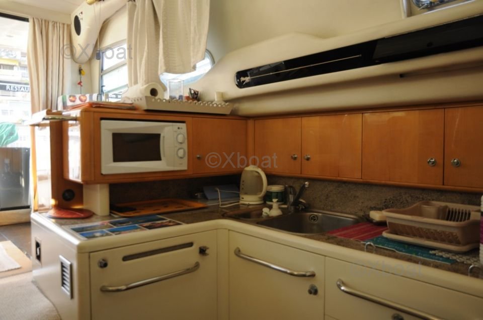 Motorisation : Le Cranchi 40 Atlantique est généralement équipé de moteurs diesel, offrant une puissance totale d'environ 370 chevaux, permettant une vitesse de croisière confortable et une bonne autonomie.