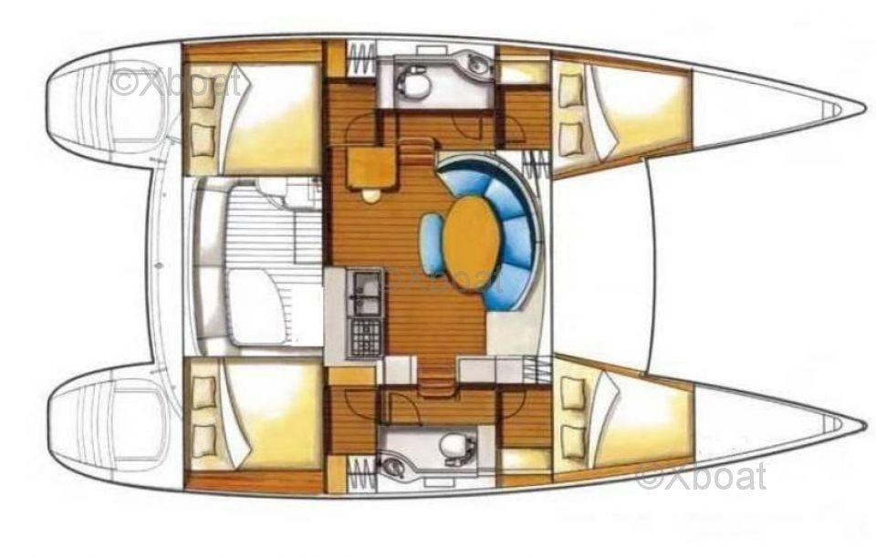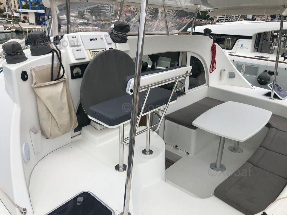 Le Lagoon 380 est équipé de deux coques qui offrent une grande stabilité et un excellent confort à l'ancrage. Le pont est spacieux et bien conçu, avec des accès faciles aux différents points de man?uvre. Le cockpit est vaste et protégé, idéal pour les repas en famille ou entre amis.