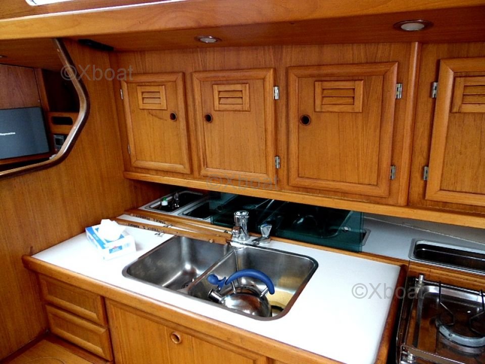 Le Nautique Saintonge NS44 CA est équipé de nombreux aménagements intérieurs pour assurer un confort optimal à bord. La cuisine est bien équipée avec un évier, un réfrigérateur et un four. Les cabines sont spacieuses et offrent un bon niveau de confort. Le cockpit est large et bien conçu pour la navigation et les repas en plein air.