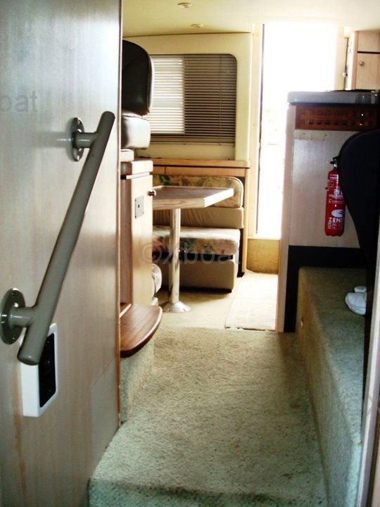 Aménagement intérieur : L'intérieur du bateau est conçu pour offrir un maximum de confort. Il comprend une cuisine équipée, une salle de bain avec douche, et des cabines spacieuses. Le salon principal est lumineux et offre une vue imprenable grâce à de grandes fenêtres.