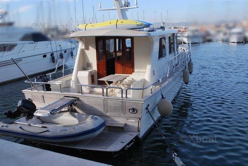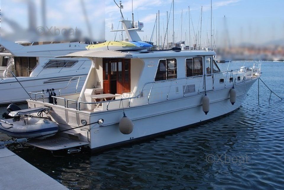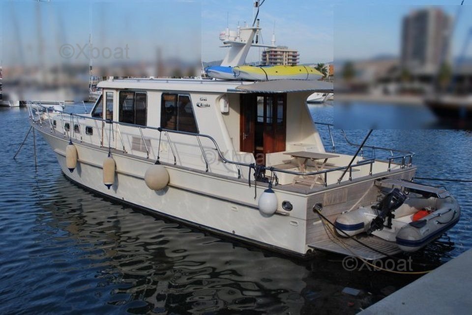 L'Alaska 43 est un bateau de croisière robuste et élégant, conçu pour offrir confort et performance sur l'eau. Ce modèle est particulièrement apprécié pour ses lignes épurées et son design intemporel, qui en font un choix idéal pour les amateurs de navigation à la fois esthétique et fonctionnelle.