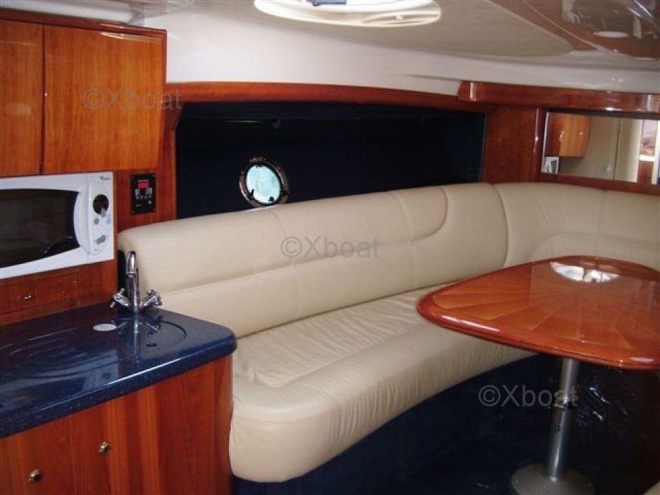 L'intérieur du Cranchi 41 Endurance est conçu pour offrir un maximum de confort et d'espace. Il dispose de deux cabines doubles, dont une cabine principale avec lit double et une cabine d'amis avec deux lits simples. La salle de bain est équipée d'une douche séparée et d'un WC électrique. Le salon est spacieux et lumineux, avec une cuisine bien équipée et un coin repas.