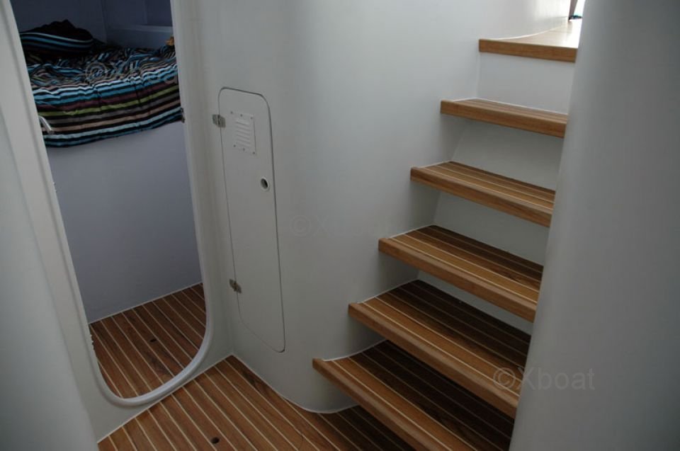Le pont est vaste et offre de nombreux espaces pour se détendre ou naviguer. Les winchs et les man?uvres sont bien placés pour une navigation intuitive et agréable. Le cockpit est protégé et offre une excellente visibilité pour le barreur.