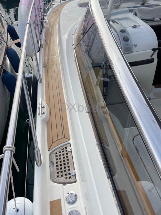 J'ai toujours fait faire les entretiens mécaniques régulièrement pour n'avoir aucun souci en mer en famille. Récemment, les échangeurs ont été déposés et nettoyés, les collecteurs d'échappement refaits à neuf, et ce n'est pas tout : le cockpit et les passes avants ont été habillés avec du teck synthétique (plus aucun entretien nécessaire).