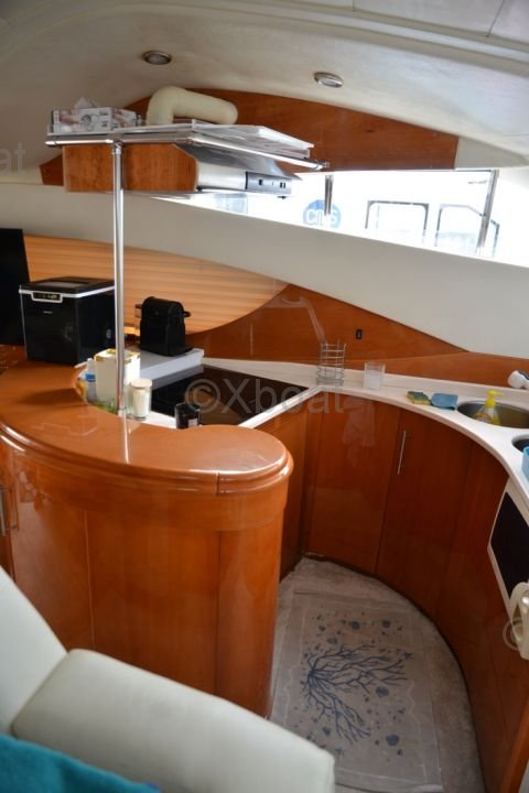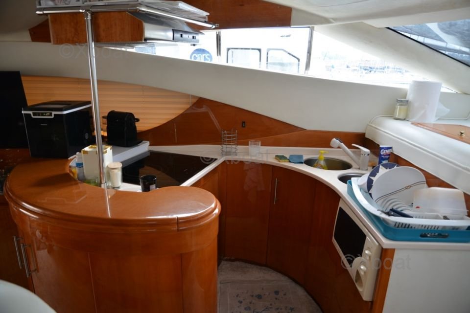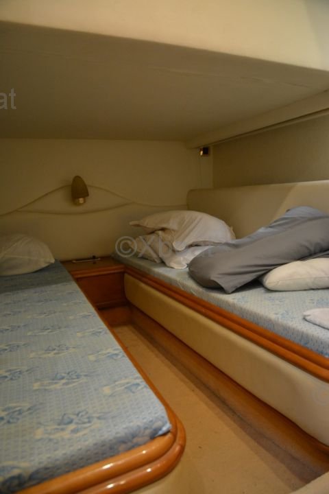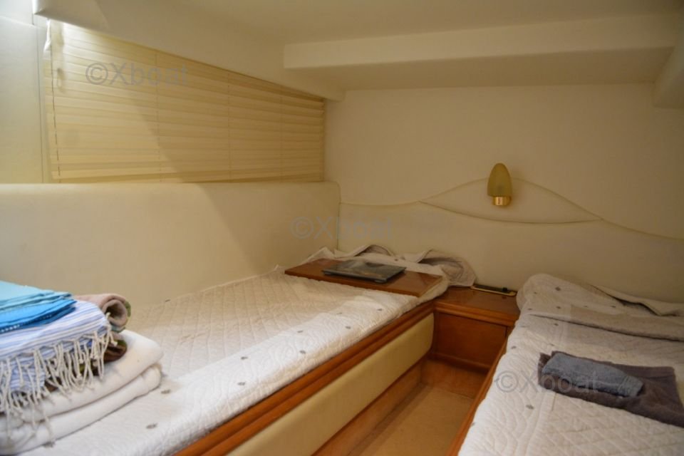 Aménagement intérieur : L'intérieur du bateau est spacieux et luxueux, avec des finitions de haute qualité. Il comprend généralement trois cabines, dont une suite propriétaire à l'avant, une cabine double et une cabine avec lits superposés. La salle de bain est équipée de toutes les commodités modernes.
