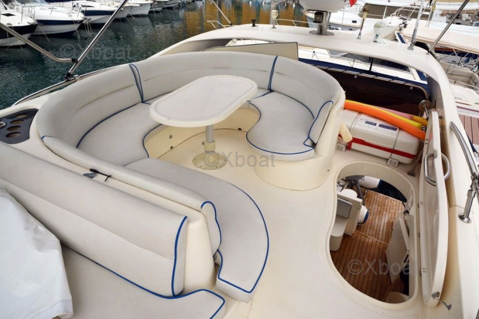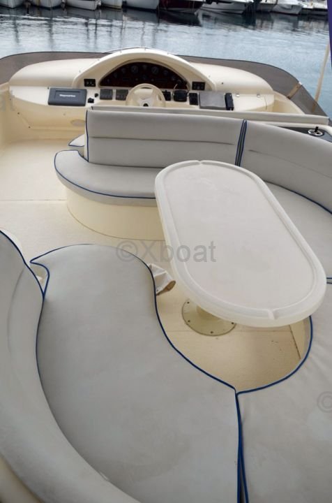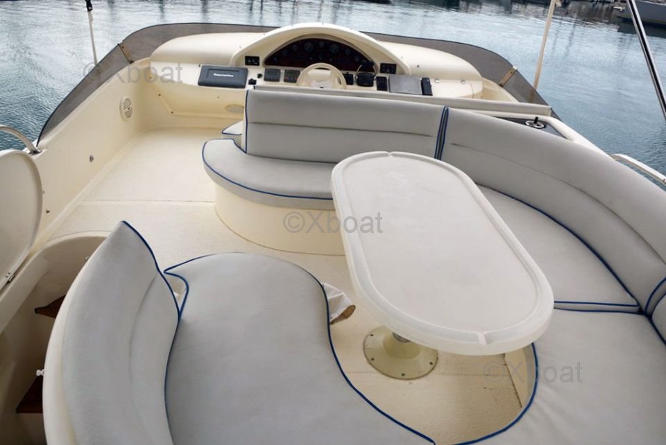 Aménagement extérieur : Le pont principal offre un espace de vie extérieur confortable avec un salon, une table à manger et un espace barbecue. Le flybridge est équipé de sièges et d'une table, offrant une vue panoramique exceptionnelle.