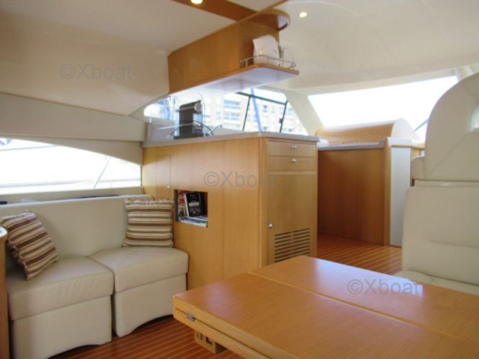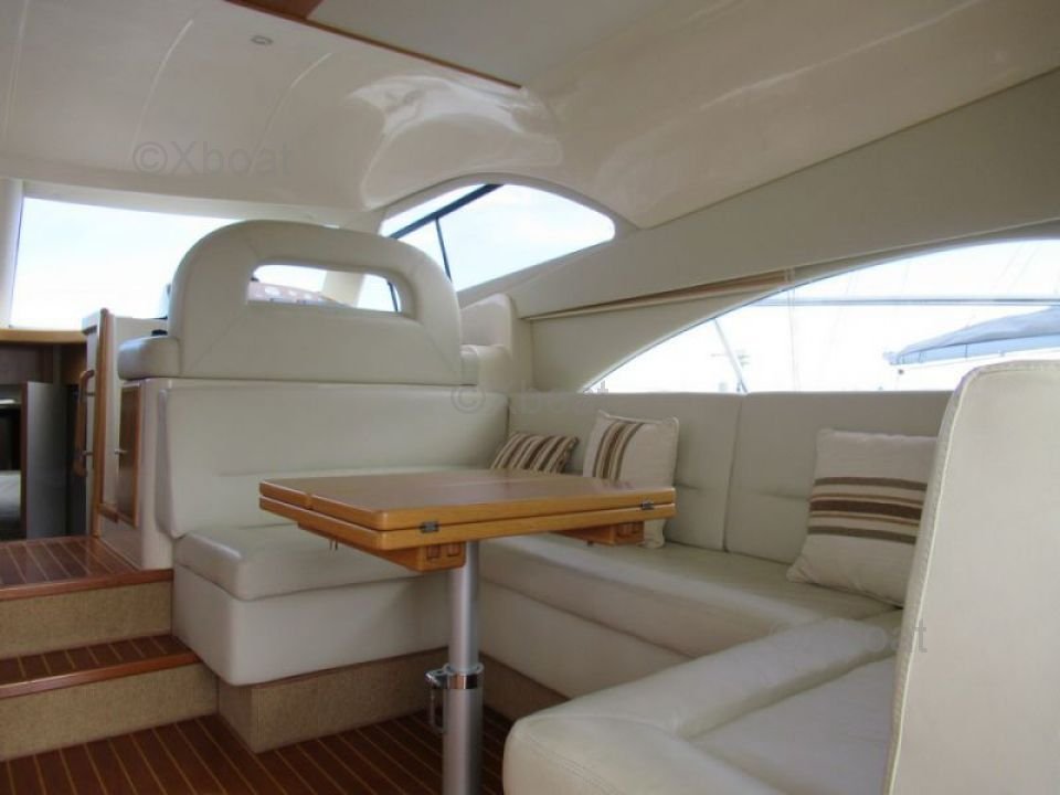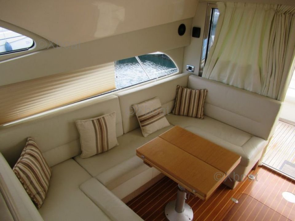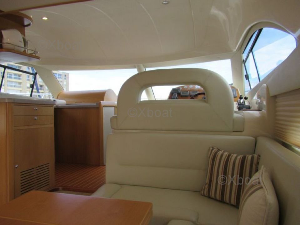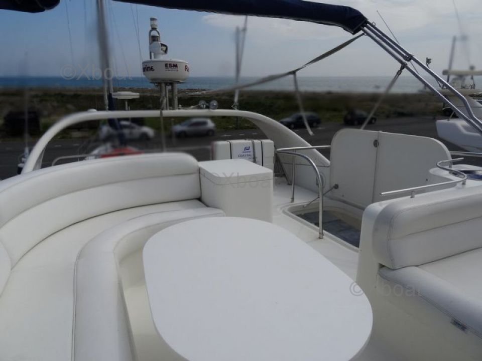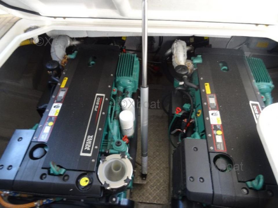 Confort et loisirs : Le pont arrière est conçu pour offrir un espace de détente avec des sièges confortables et une table à manger. Le bateau est également équipé d'un système de sonorisation et d'un réfrigérateur pour les boissons fraîches. Pour les amateurs de sports nautiques, une plateforme de bain et une douche extérieure sont disponibles.