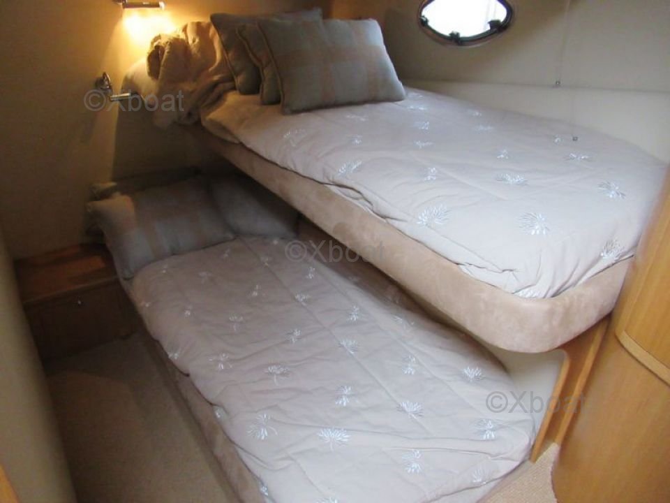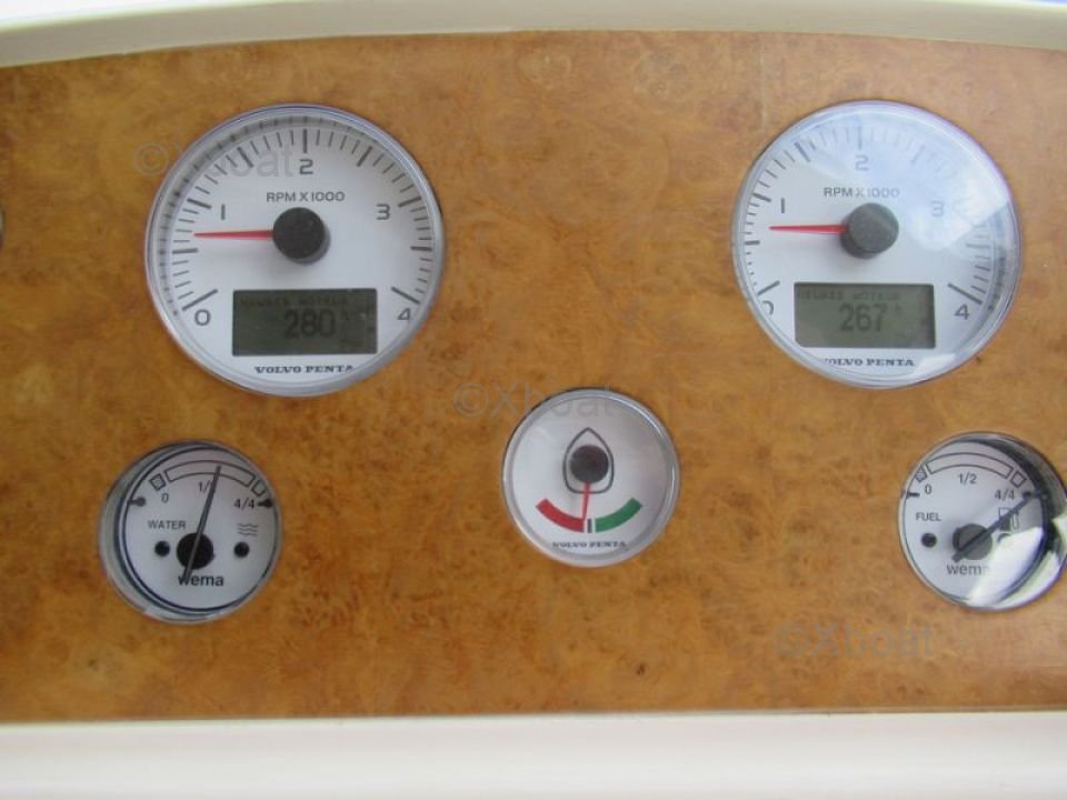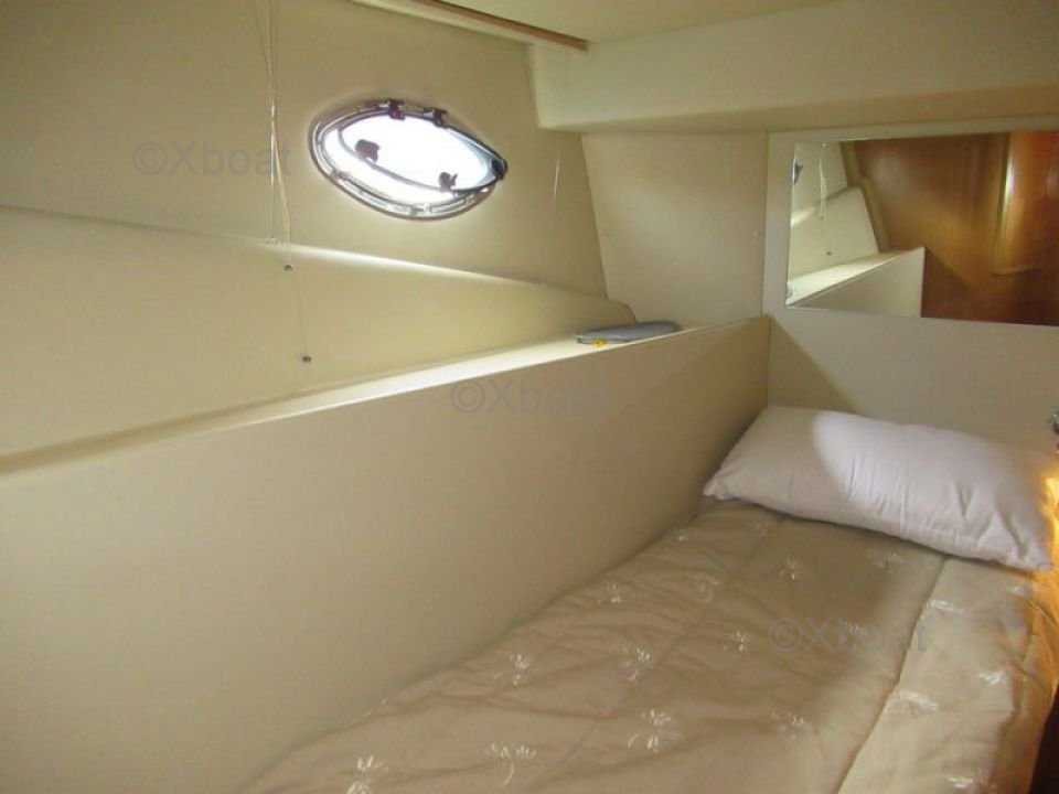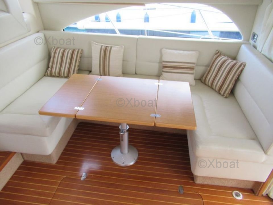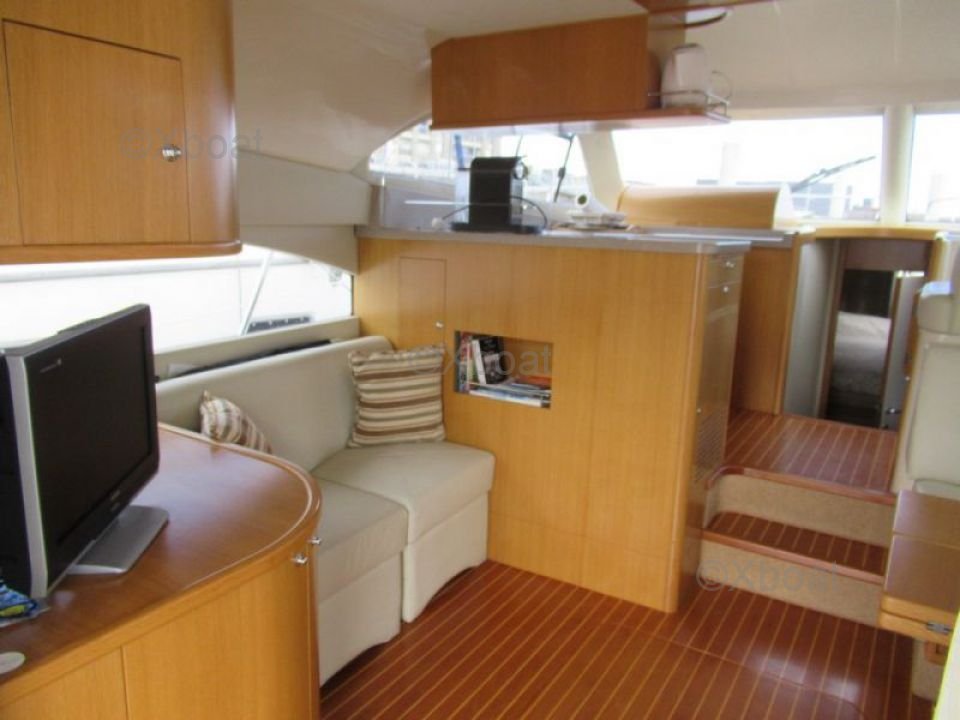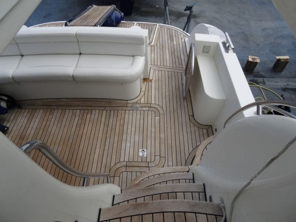 Confort et loisirs : Le pont arrière est conçu pour offrir un espace de détente avec des sièges confortables et une table à manger. Le bateau est également équipé d'un système de sonorisation et d'un réfrigérateur pour les boissons fraîches. Pour les amateurs de sports nautiques, une plateforme de bain et une douche extérieure sont disponibles.
