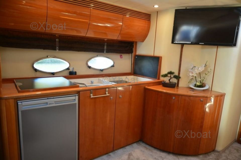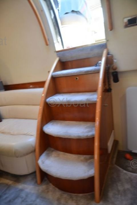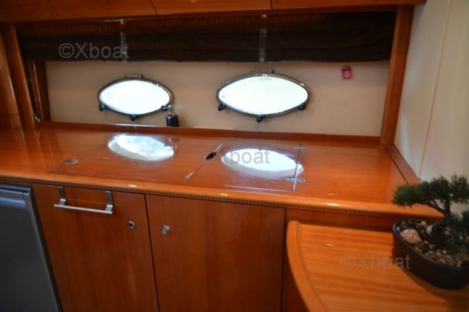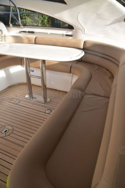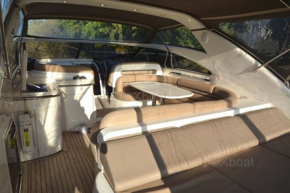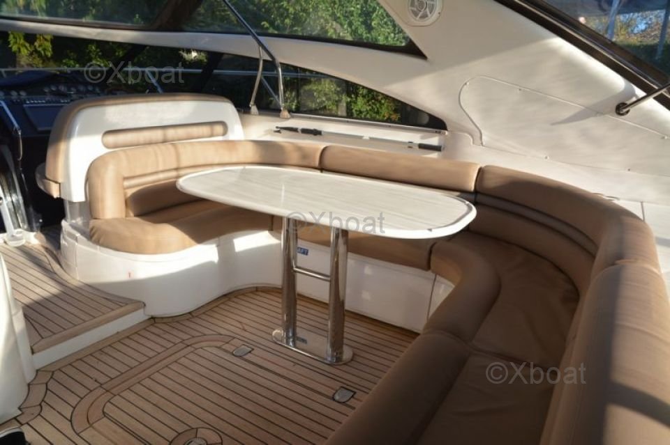 Équipements de pont : Le pont du Princess V50 est conçu pour le plaisir et la détente. Il est équipé d'un espace de bain à l'arrière, d'un salon extérieur et d'un coin repas. Le pont supérieur offre une vue panoramique et est idéal pour les soirées sous les étoiles.