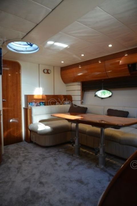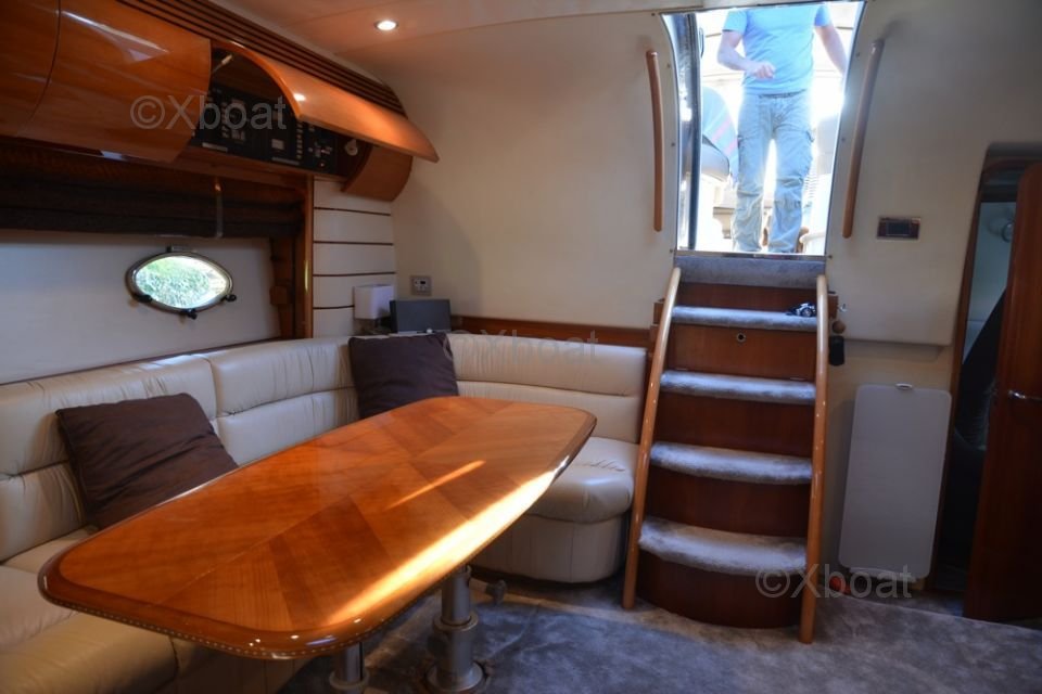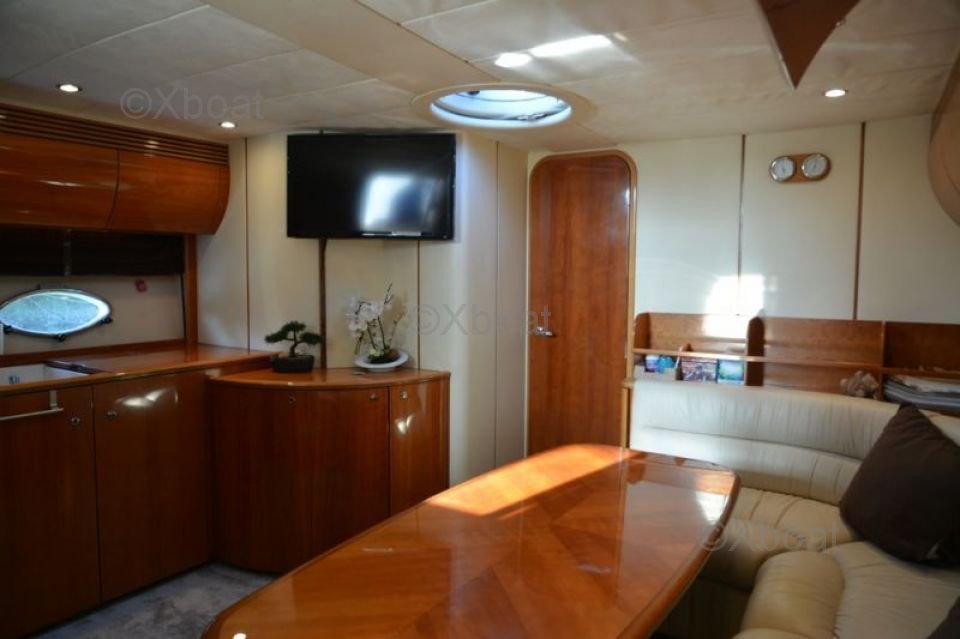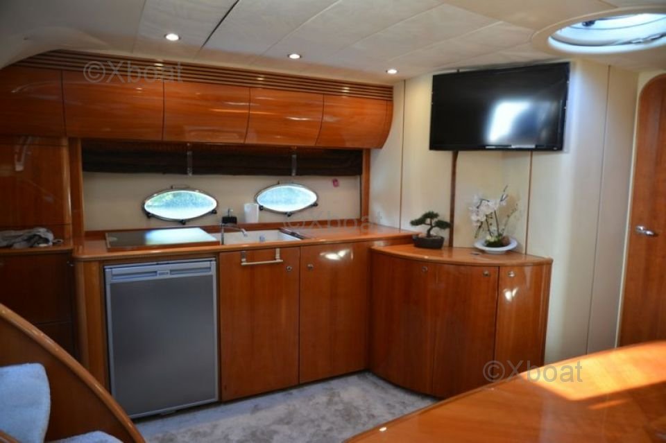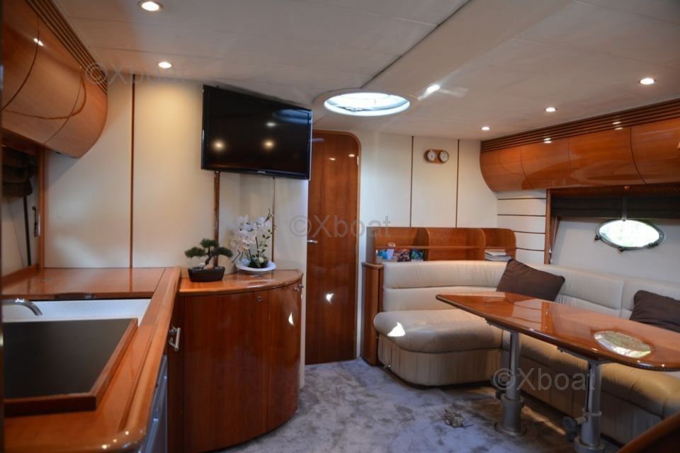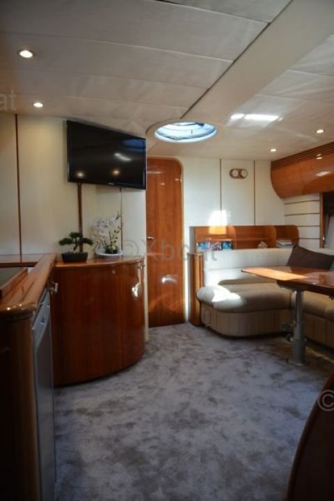 Aménagement intérieur : L'intérieur du Princess V50 est spacieux et luxueux, avec des finitions de haute qualité. Le salon principal est lumineux et accueillant, avec de grandes baies vitrées offrant une vue imprenable sur l'extérieur. La cuisine est bien équipée et dispose de tous les appareils modernes nécessaires. Le bateau dispose de trois cabines, chacune avec sa propre salle de bain, offrant un confort optimal pour les passagers.