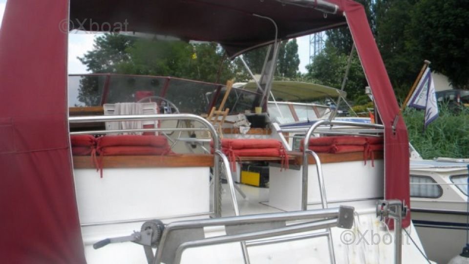 Le cockpit est vaste et bien conçu, offrant un espace de vie extérieur confortable. Il est équipé d'une table à manger, de banquettes et d'un coin salon. Le pont supérieur dispose d'un espace de soleil et d'un poste de pilotage protégé.
