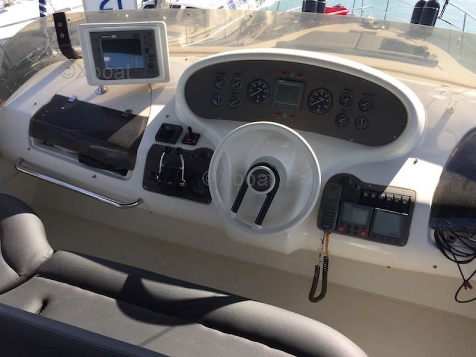Équipements : L'Azimut 58 Fly est doté de nombreux équipements de confort et de sécurité, tels qu'un système de navigation moderne, un radar, un GPS, un sonar, un système de climatisation, un générateur électrique, et une plateforme de bain hydraulique. Le pont supérieur offre un espace de détente avec un salon extérieur, un coin repas, et un solarium.