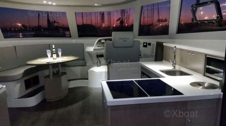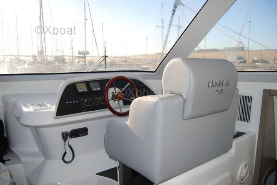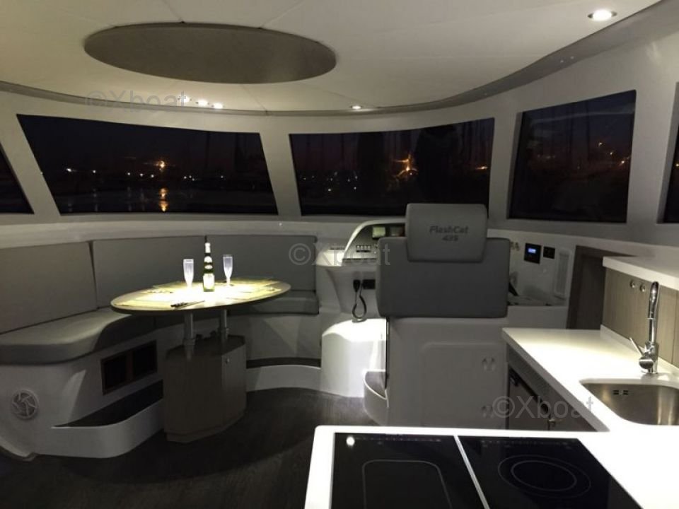 Le Flash Cat 43 est équipé de deux coques robustes qui assurent une grande stabilité et une excellente performance en mer. Le pont spacieux offre suffisamment d'espace pour les activités de plein air, tandis que l'intérieur est conçu pour offrir un maximum de confort avec des cabines spacieuses et une cuisine bien équipée.