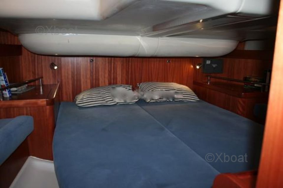 À l'intérieur, le bateau offre un espace de vie spacieux et confortable. La cabine principale dispose de deux grandes couchettes, tandis que la cabine avant peut accueillir deux personnes supplémentaires. La cuisine est bien équipée et le salon est lumineux grâce aux nombreux hublots.
