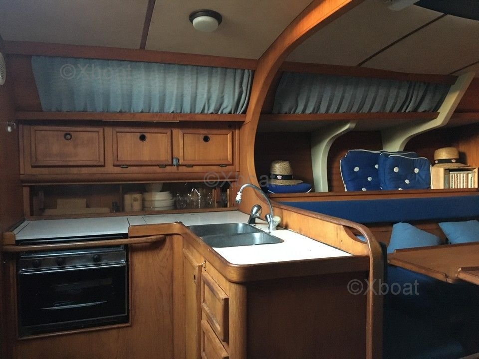 Ce voilier est également apprécié pour sa performance sous voile, grâce à une carène bien profilée et une voilure généreuse. Il est idéal pour les croisières côtières et les voyages au long cours, offrant une combinaison parfaite de confort et de performance.