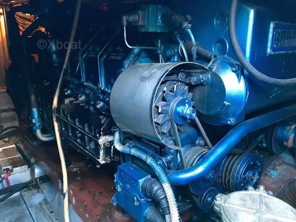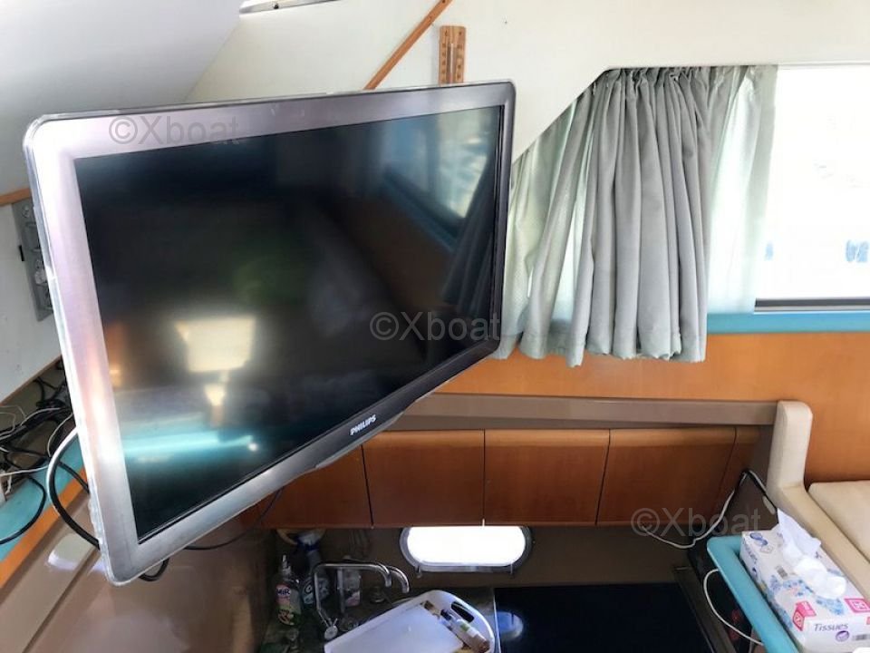 Sécurité et navigation : Le bateau est équipé de systèmes de navigation avancés, incluant un GPS, un sonar et un radar, pour une navigation sûre et précise. Les équipements de sécurité, tels que les gilets de sauvetage, les radeaux de sauvetage et les extincteurs, sont également présents pour assurer la sécurité de l'équipage et des passagers.