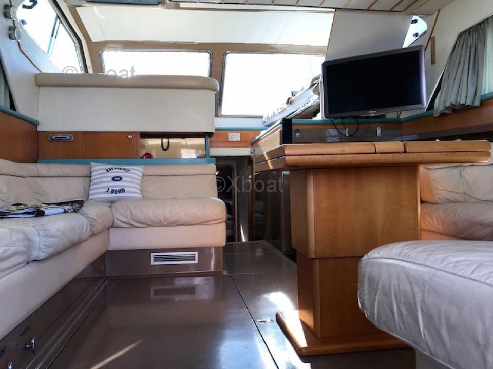 Confort et équipement : L'intérieur du Ferretti Altura 44 S est spacieux et luxueux, avec des matériaux de haute qualité et un design moderne. Le salon est lumineux et offre une vue imprenable sur l'extérieur grâce à de grandes baies vitrées. La cuisine est bien équipée, et les cabines offrent un confort optimal pour des nuits paisibles en mer.