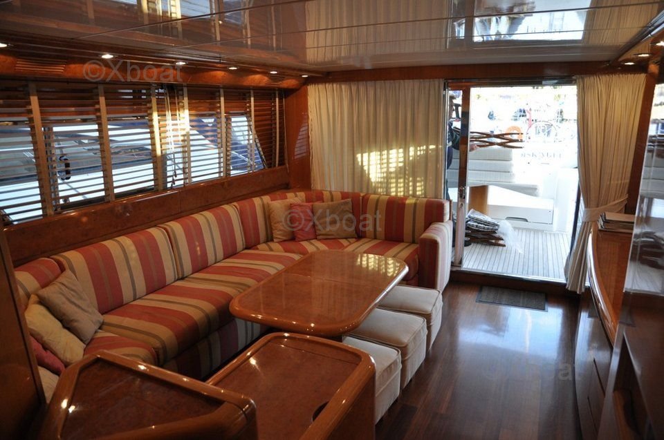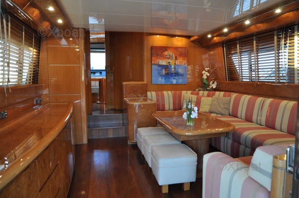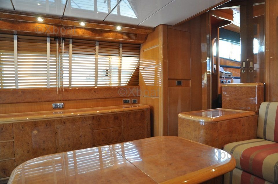 L'intérieur du San Lorenzo 62 est conçu avec des matériaux de haute qualité, offrant un mélange harmonieux de modernité et de classicisme. Les espaces de vie sont spacieux et bien éclairés, avec de grandes baies vitrées offrant une vue panoramique sur l'horizon. Le salon principal et le salon à l'avant sont idéaux pour les moments de détente et les réunions conviviales.
