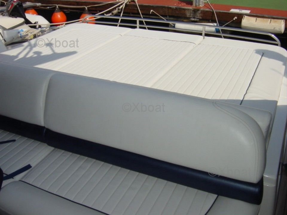 Aménagement extérieur : Le pont principal offre un espace de vie extérieur généreux avec un salon et une zone de repas, idéal pour profiter des journées en mer. Le flybridge est équipé d'un poste de pilotage supplémentaire, d'un salon et d'un bar, offrant une vue imprenable sur l'horizon.