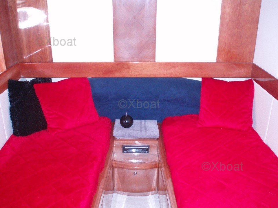 Aménagement intérieur : Ce yacht offre un espace de vie spacieux et luxueux avec trois cabines et deux salles de bain. La cabine principale dispose d'un lit double, tandis que les deux cabines d invitados ont des lits simples. Le salon et la salle à manger sont situés sur le pont principal, offrant une vue imprenable sur l'horizon.