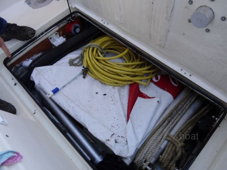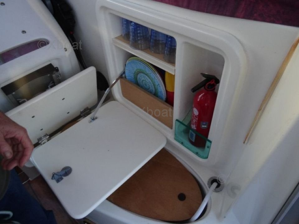 Confort et Équipements: Le cockpit est spacieux et bien conçu, avec des sièges ergonomiques et des rangements intégrés. Le poste de pilotage est équipé de tous les instruments de navigation nécessaires, y compris un GPS, un sondeur et un radar. La cabine offre un espace de couchage pour deux personnes, avec des installations sanitaires complètes.