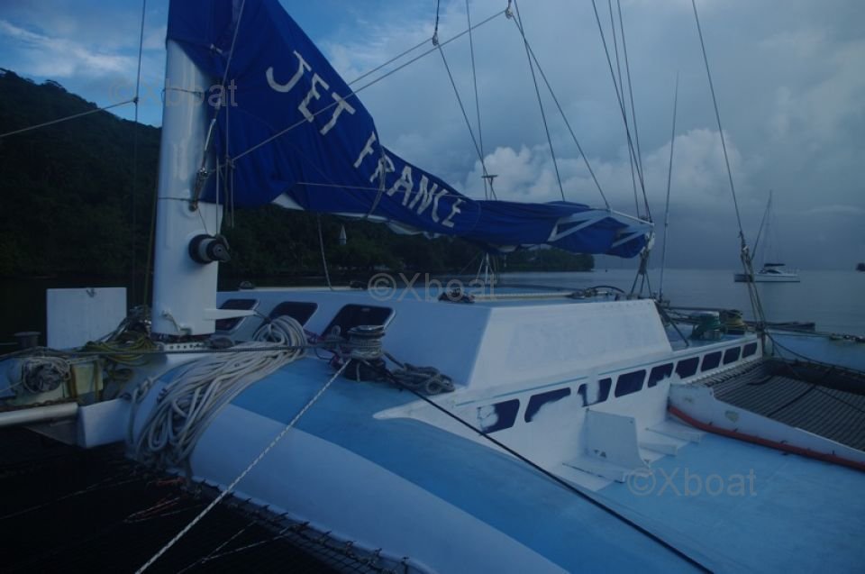 Caractéristiques principales : Conçu pour la performance et la compétition, ce catamaran de course est équipé des dernières technologies pour offrir une expérience de navigation rapide et sécurisée. Sa construction en carbone et ses voiles de grande surface permettent des performances optimales en course.