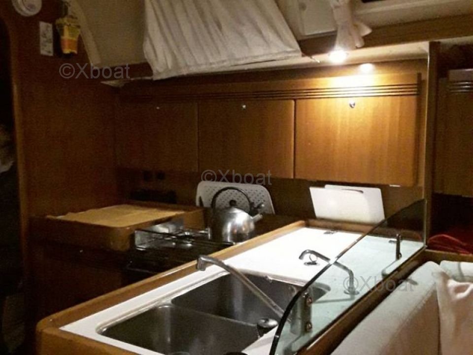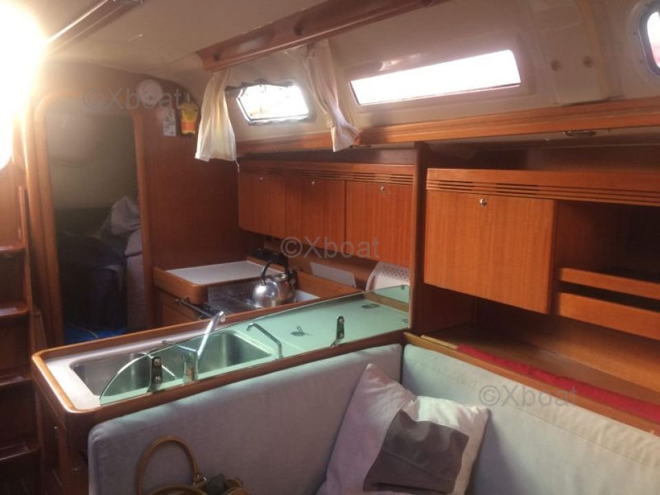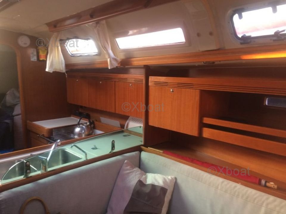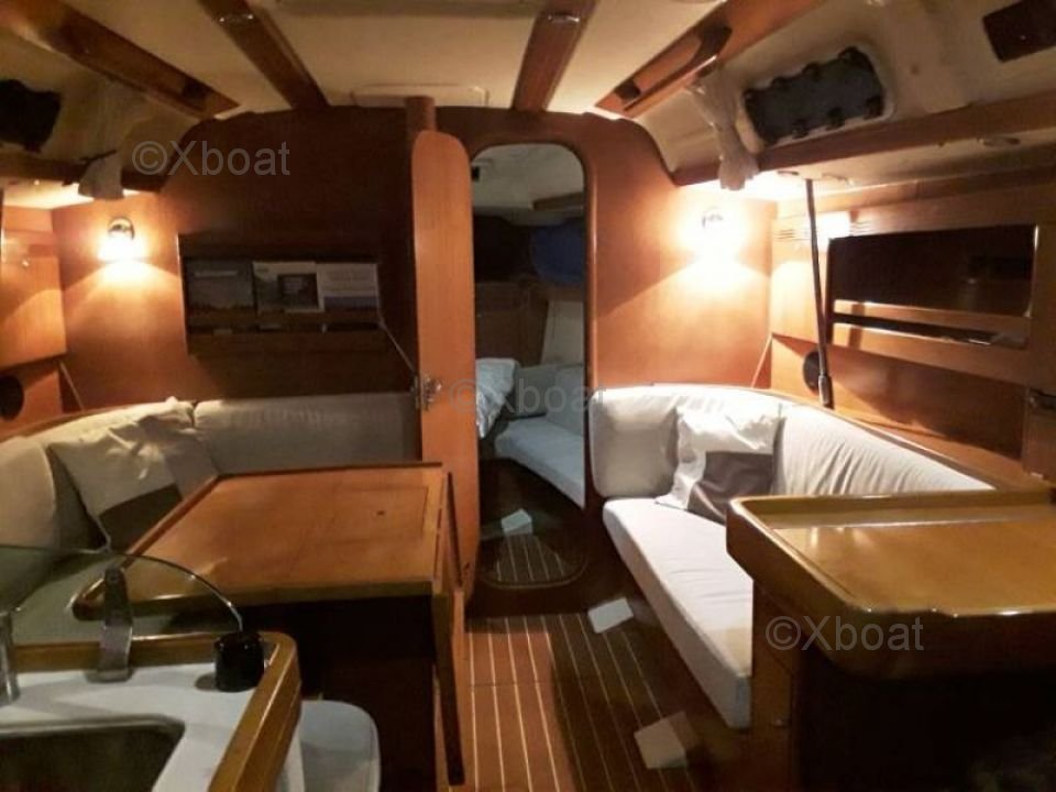 L'intérieur du Dufour 40 Performance est spacieux et bien agencé, offrant un excellent confort pour les longs voyages. Il dispose de trois cabines doubles, d'une cuisine équipée et d'une salle de bain complète. Les finitions sont soignées, avec des matériaux de qualité et une attention particulière portée à l'ergonomie.