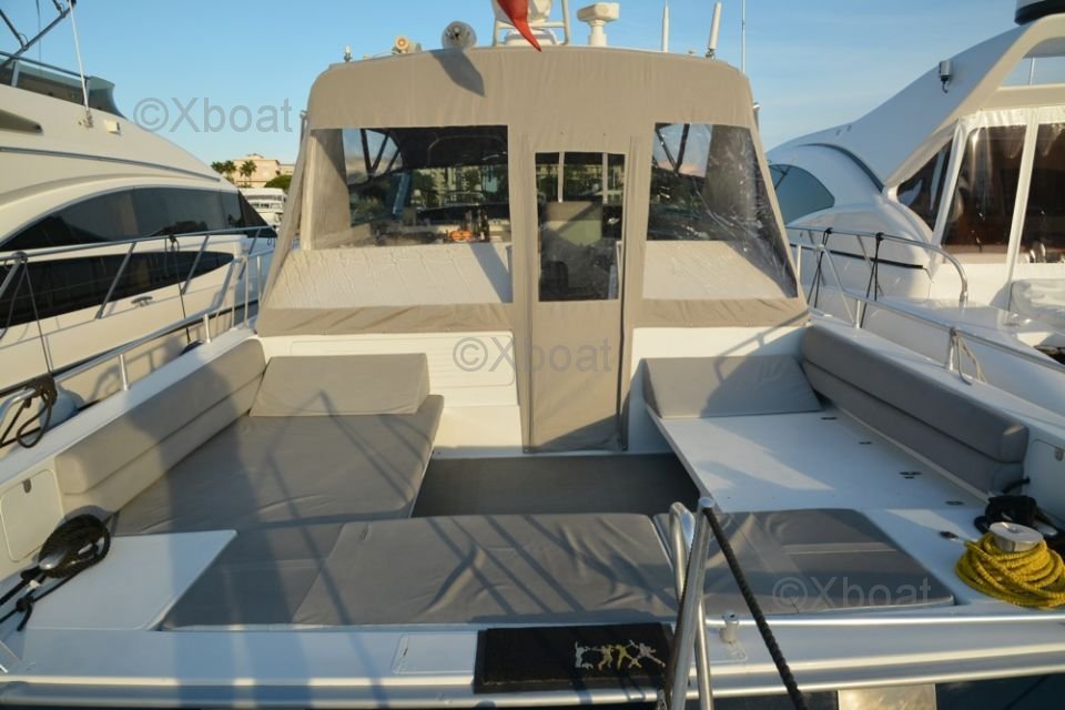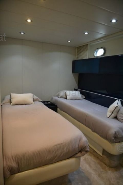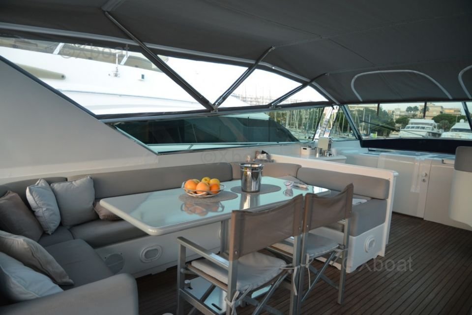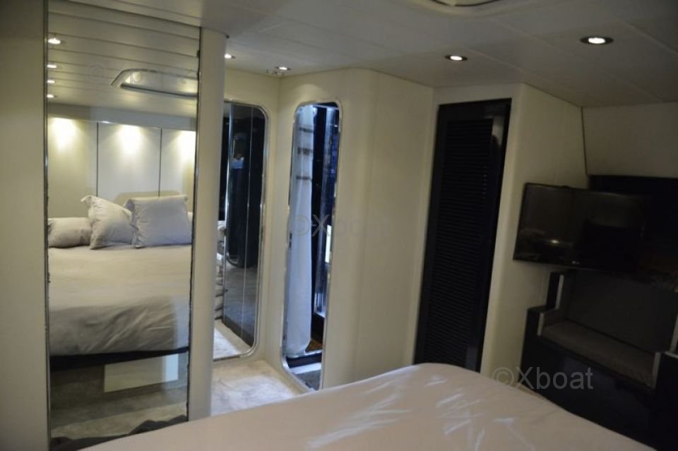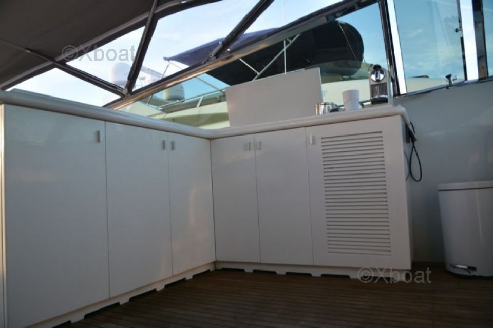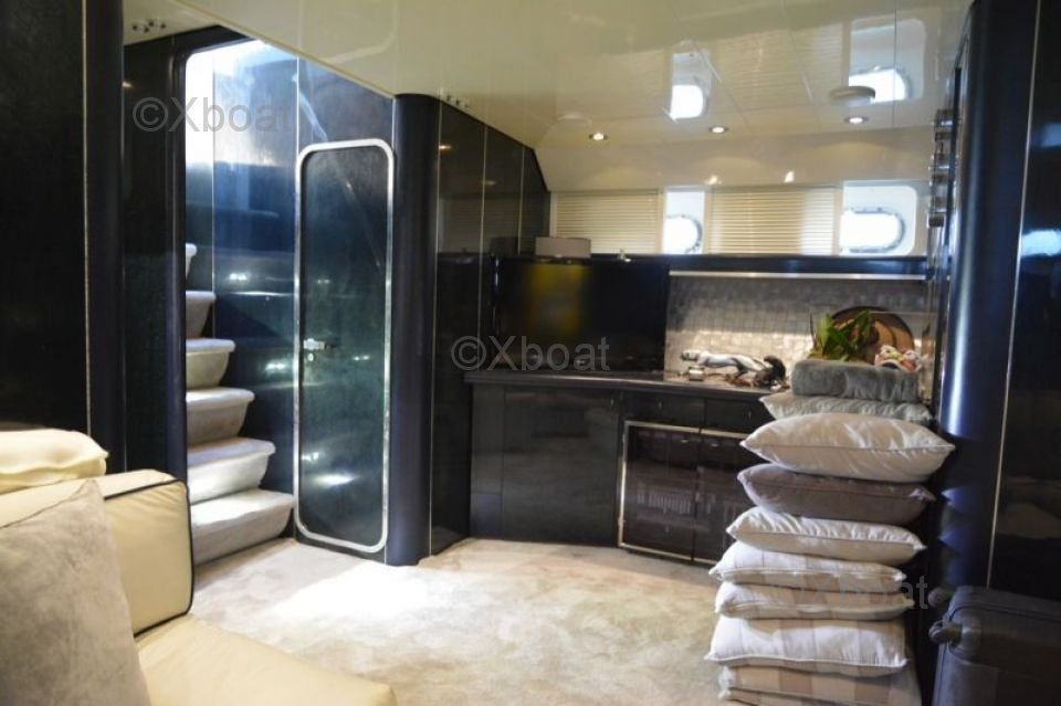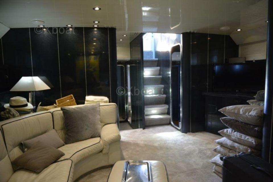 Dimensions et Construction : Le Leopard Sport 70 mesure environ 21,34 mètres de longueur hors-tout, avec une largeur de 5,82 mètres et un tirant d'eau de 2,74 mètres. Sa construction robuste en fibre de verre et en composite assure une durabilité et une résistance exceptionnelles, même dans les conditions marines les plus exigeantes.