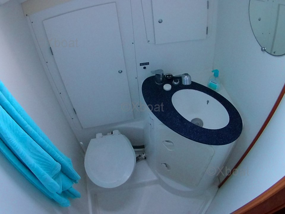 Le Cyclades 50.4 est équipé de trois cabines doubles, offrant un espace de vie confortable pour jusqu'à six personnes. La cuisine est bien équipée avec un réfrigérateur, un évier et un plan de travail spacieux. Le cockpit est généreux et offre un espace de vie extérieur agréable.