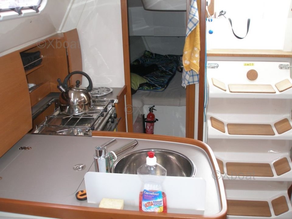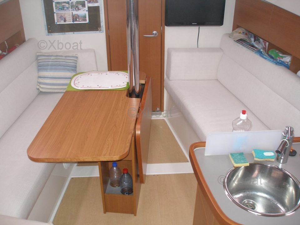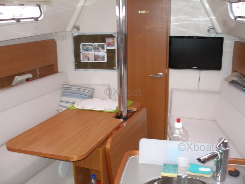 L'intérieur du Hanse 325 est conçu pour offrir un maximum de confort. Il dispose de deux cabines doubles, d'une cuisine bien équipée et d'une salle de bain complète. Les matériaux de finition de haute qualité et l'aménagement intelligent maximisent l'espace de vie à bord.
